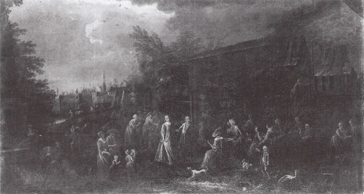 Giovanni Michele GRANERI (actif à Turin entre 1730 et 1778). Scène paysanne dans la cour d'une ferme. Toile.