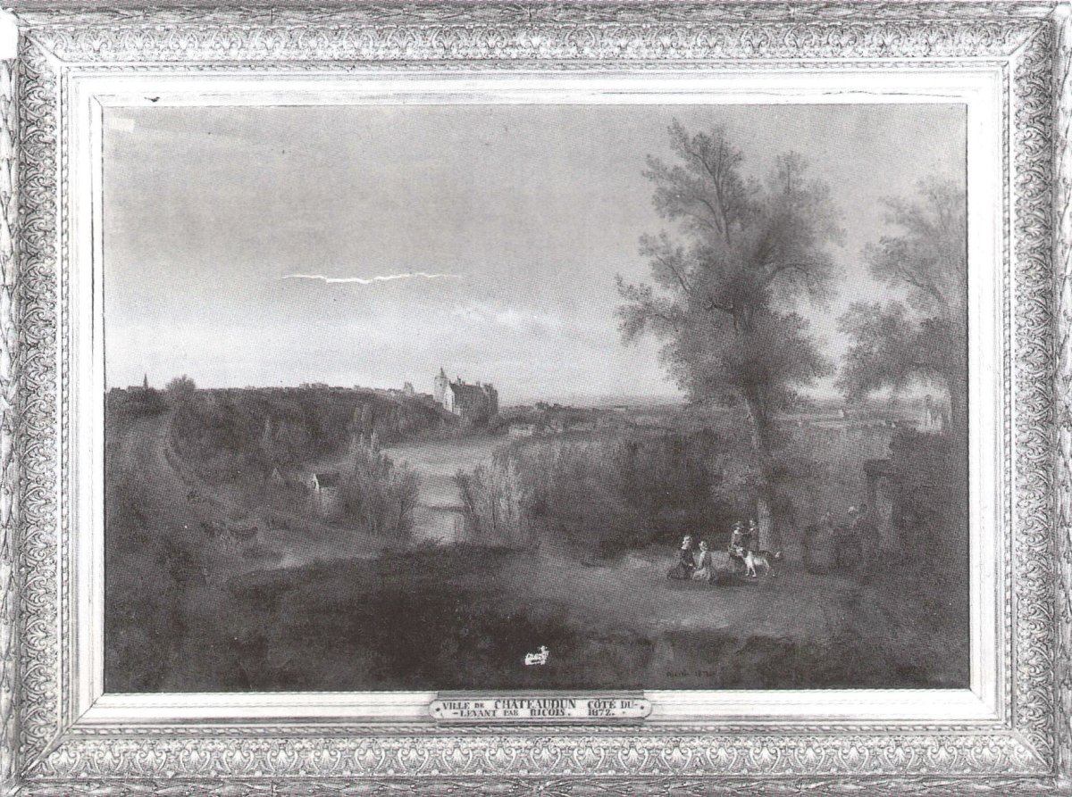 RICOIS François Edme (Courtalain 1795 - Paris 1881). Ville de Châteaudun, côté du levant. Huile sur toile. Signée en bas à droite et datée 1872. (Accidents.)