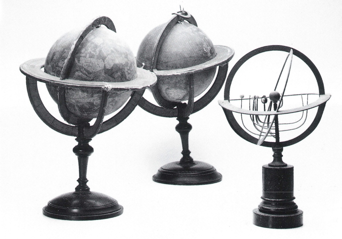 PAIRE DE SPHÈRES TERRESTRE ET CÉLESTE en bois et papier...