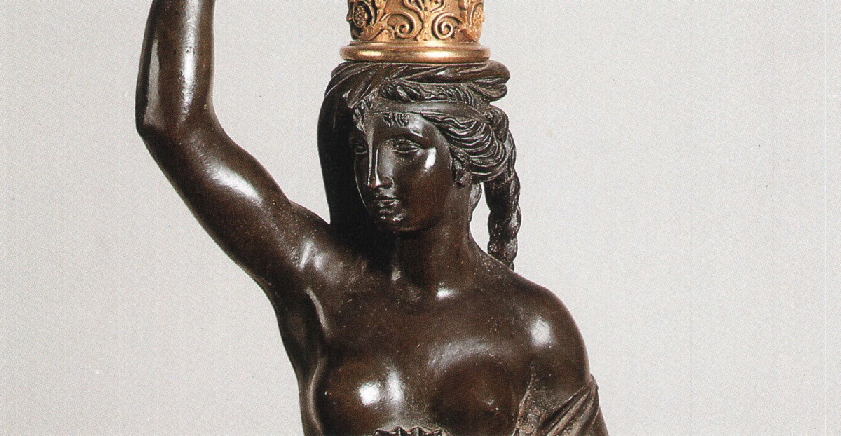 Ce modèle de candélabre, formé de femmes drapées à l'antique, est créé, vers 1785, par le bronzier François RÉMOND, reçu maître en 1774, pour le marchand mercier Daguerre, comme en témoignent les girandoles à femmes canéphores, vendues en 1785 à la princesse Kinsky. Devant son succès, et jusqu'en 1810, François Rémond adapte les candélabres à l'évolution stylistique. Ainsi, les branches et le socle de la paire présentée ici prouvent qu'elle a été mise au goût du jour par François Rémond après 1800. D'autre part, François Rémond travaille sur les modèles des statuaires de Simon BOIZOT, connu pour ses nombreuses interventions dans l'ameublement de luxe comme les quatre cariatides représentant les quatre saisons du serre-bijoux de la reine Marie-Antoinette (1787), dont nous retrouvons ici des similitudes dans le traitement des drapés et de la coiffe.