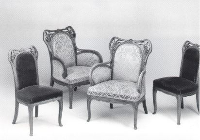 Référence : Collection des Grands Styles: Le Modern Style, Baschet et Cie, reproduit p. 64. Architectes du groupe des 6 après l'adhésion en 1897 de Charles Plumet, Tony Selmersheim et Charles Plumet réalisent des meubles de construction soignée. Hostiles à tout symbolisme, leur création se veut fonctionnaliste et polyvalente. Ils allient force, grâce et dynamisme.
