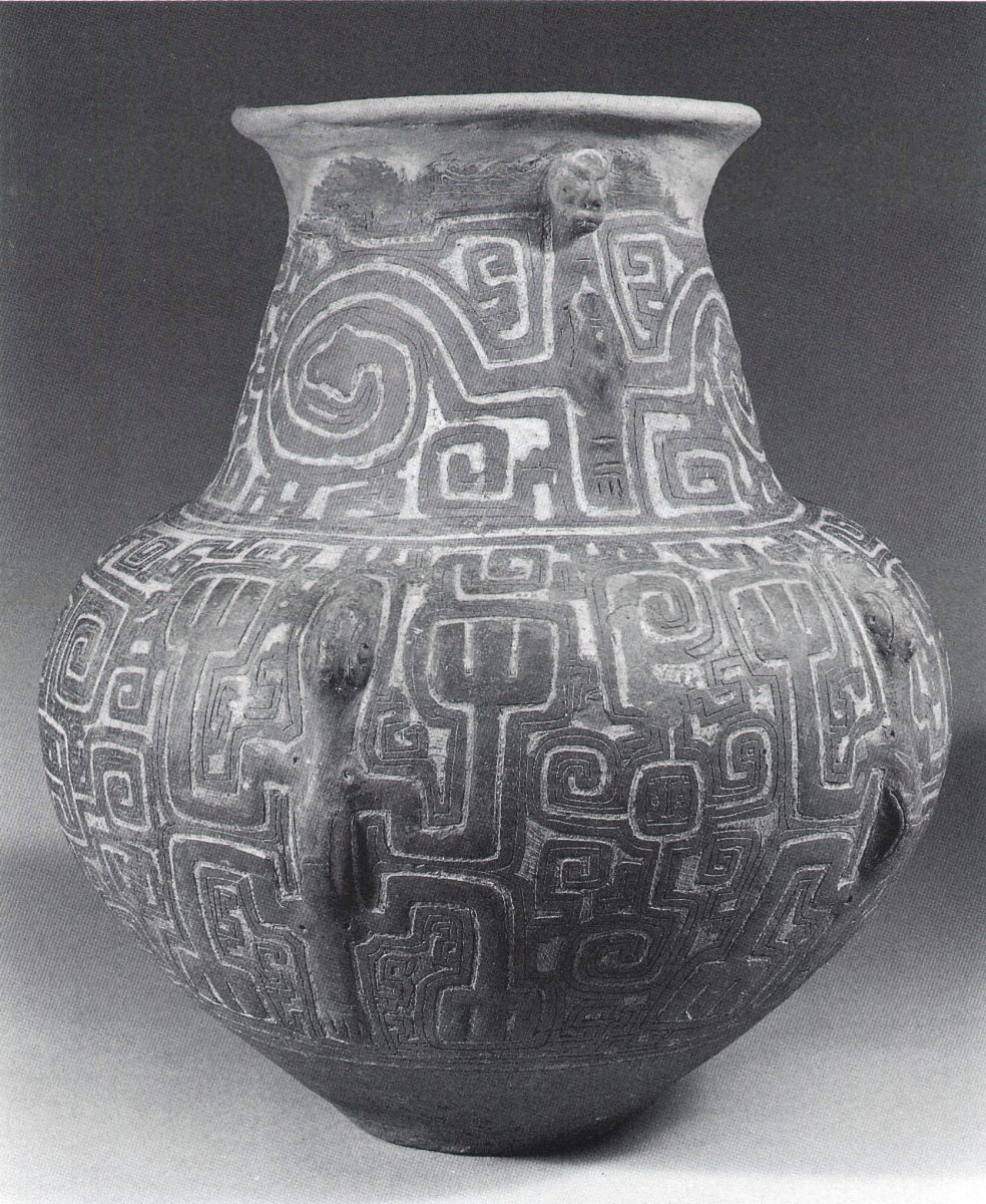 Grande urne funéraire en provenance de l'île de Marajo. Restauration « de musée» sur le col qui a été cassé. Engobe brun-rouge sur tout le corps de l'urne. Dessins et figures anthropo-zoomorphes jumelées incisées sur le corps. Cette urne a été présentée au Musée de la Science de Barcelone lors de l'exposition sur l'Amazonie. Il s'agit d'une pièce spécialement rare.