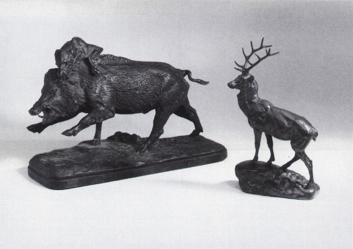 BONHEUR Isidore (1827-1901). Sanglier attaqué par un chien. Bronze à patine brune. Signé sur la terrasse.