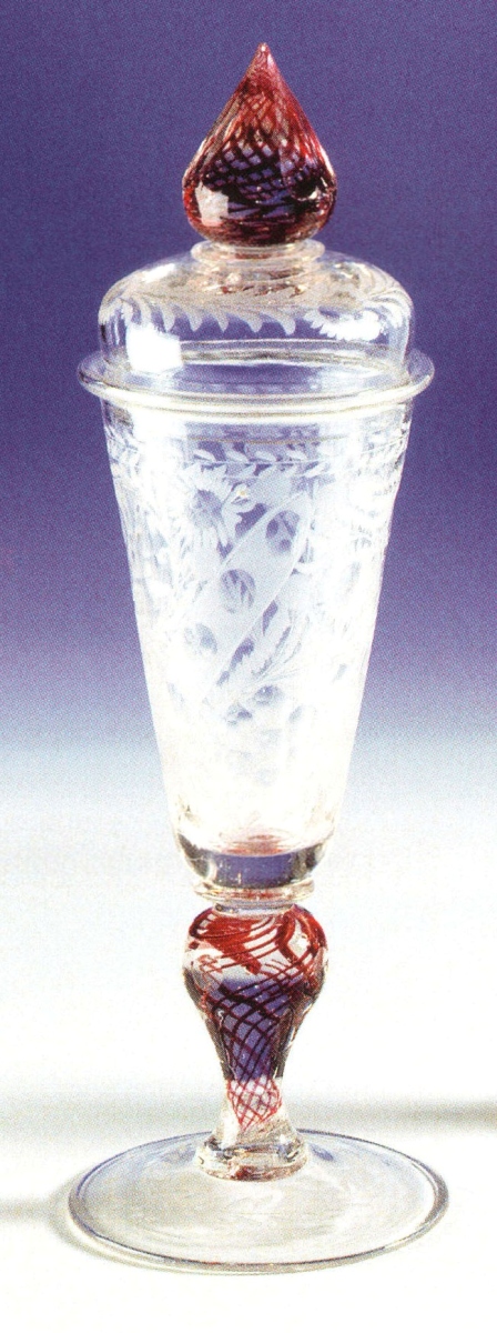 VERRE À PIED COUVERT en cristal taillé de Bohême.