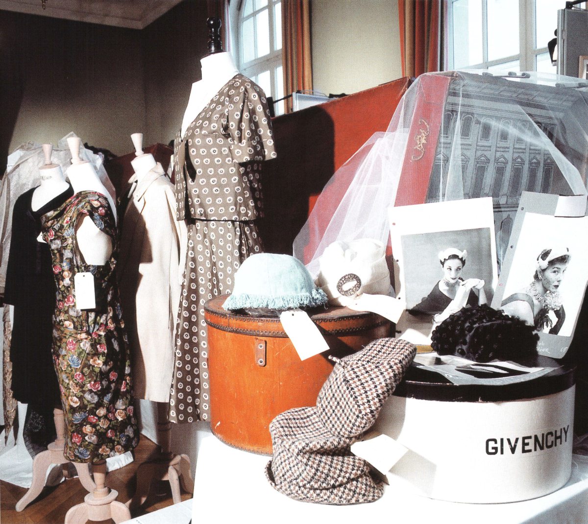 CASTILLO de LANVIN. BONNET drapé organza blanc des Textiles Robert Perrier. Griffé. Années 1950.