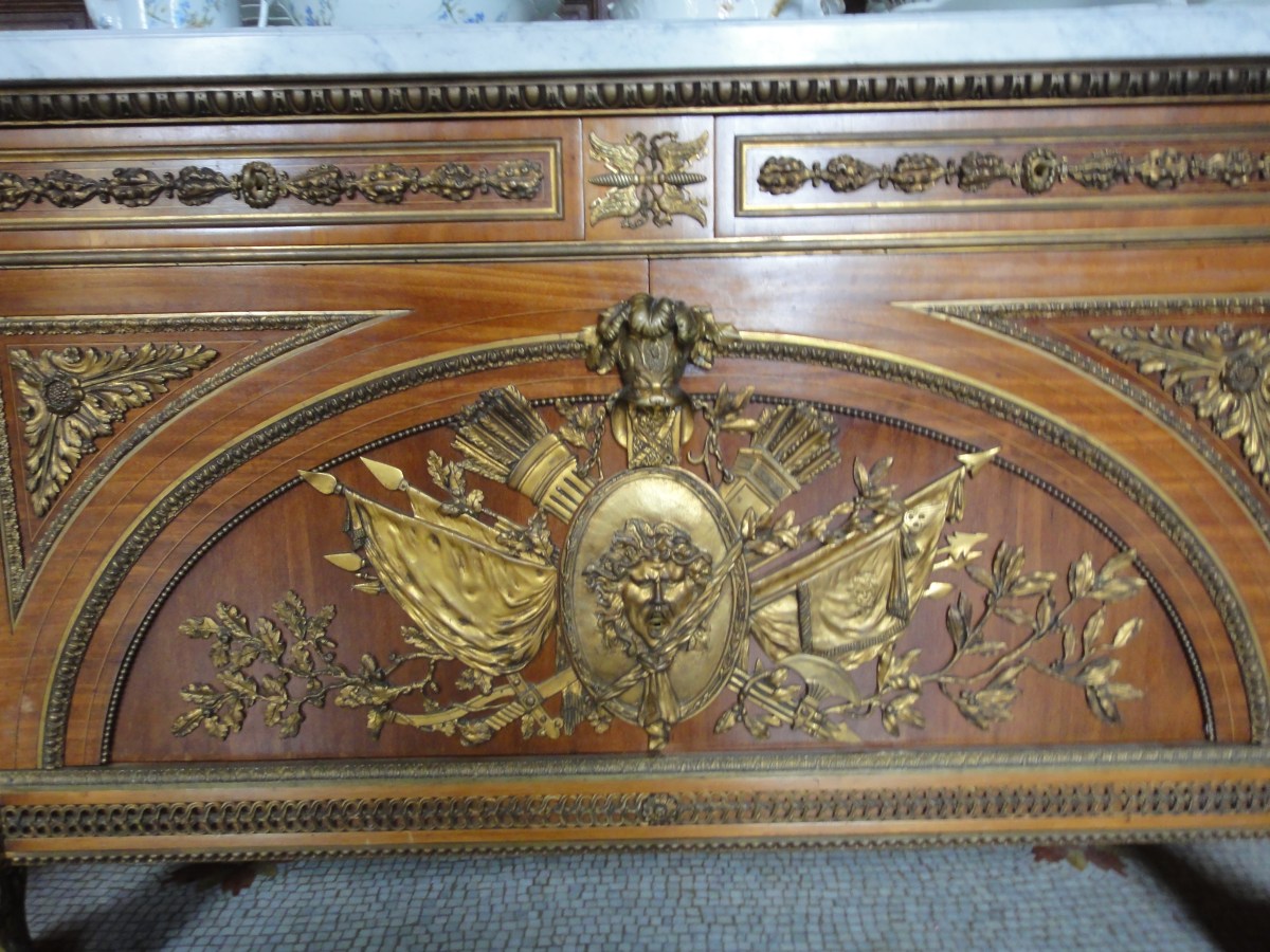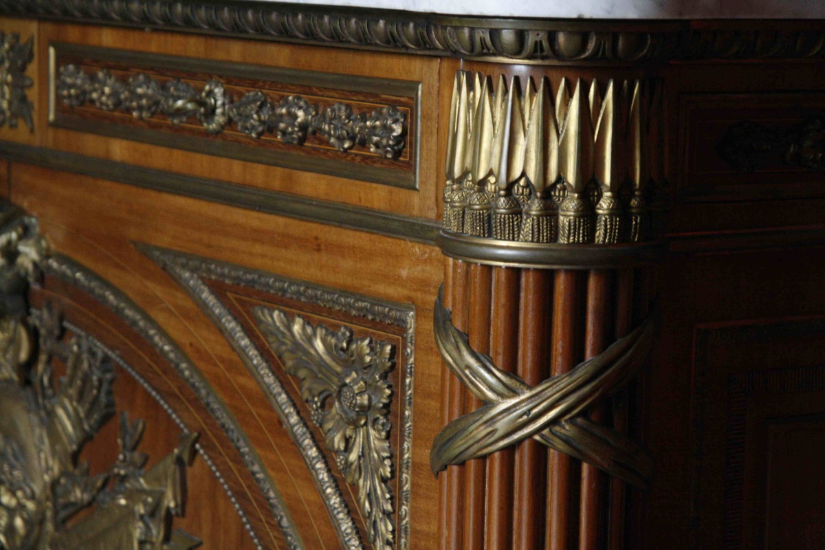 Cette riche commode de style Louis XVI a été exécutée durant la seconde moitié du XIXe siècle.