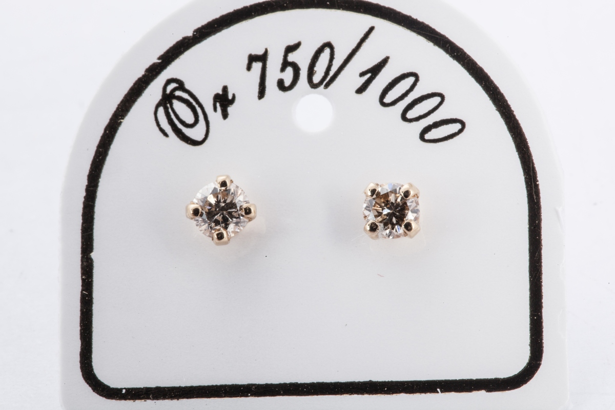 Paire de BOUTONS d'OREILLE en or jaune, chacun serti d'un diamant rond de taille brillant.