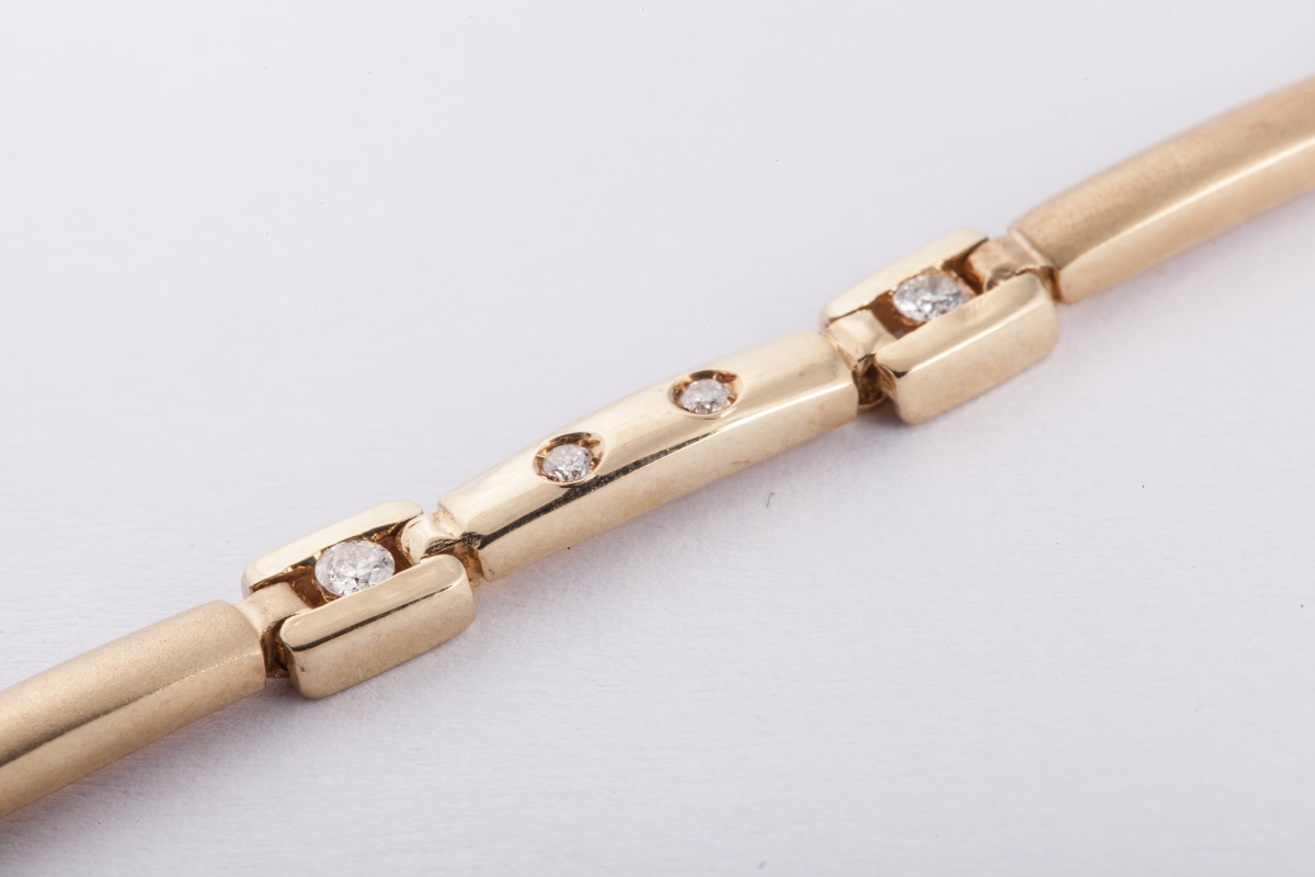 BRACELET articulé en or jaune, partiellement serti de diamants, certains maillons en or amati.