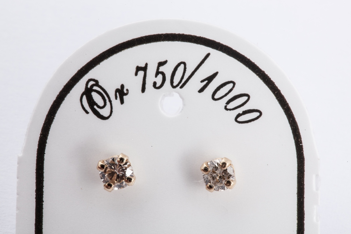 Paire de BOUTONS d'OREILLE en or jaune, sertie de brillants.