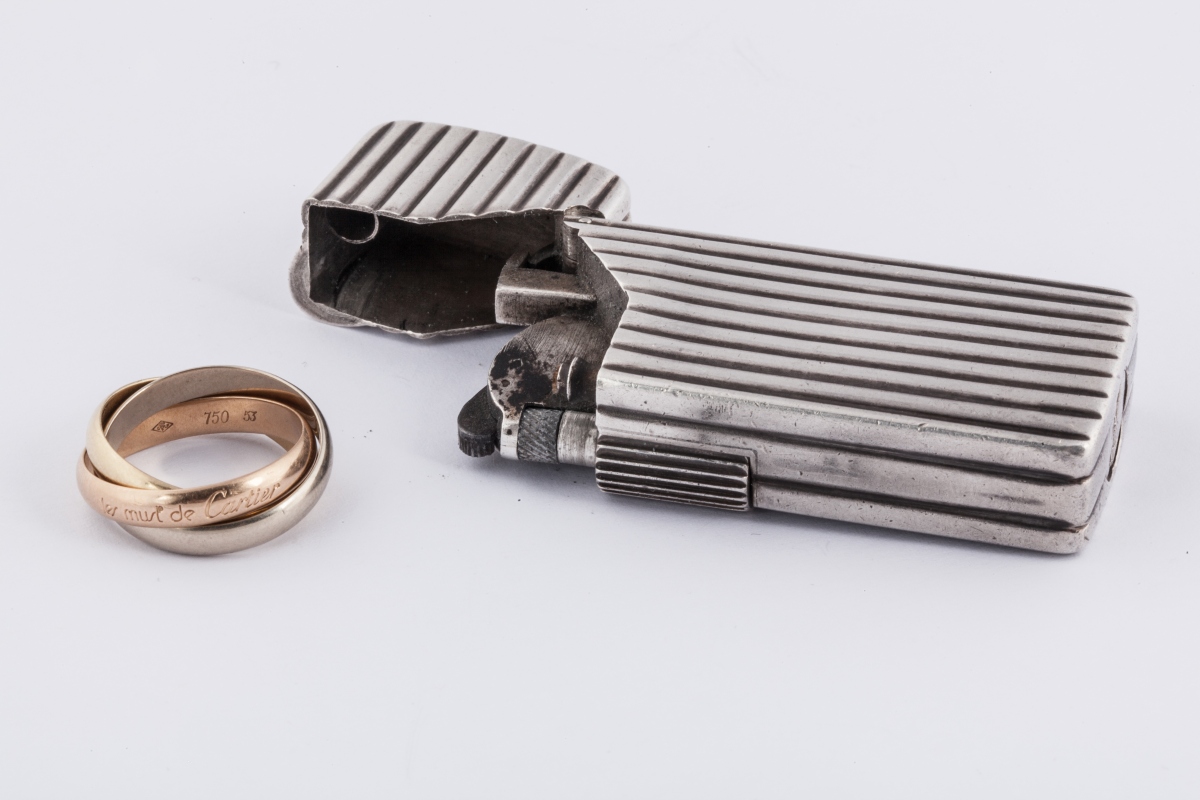 Joint : BRIQUET à essence en argent de la maison CARTIER, signé. poids brut 65 g.