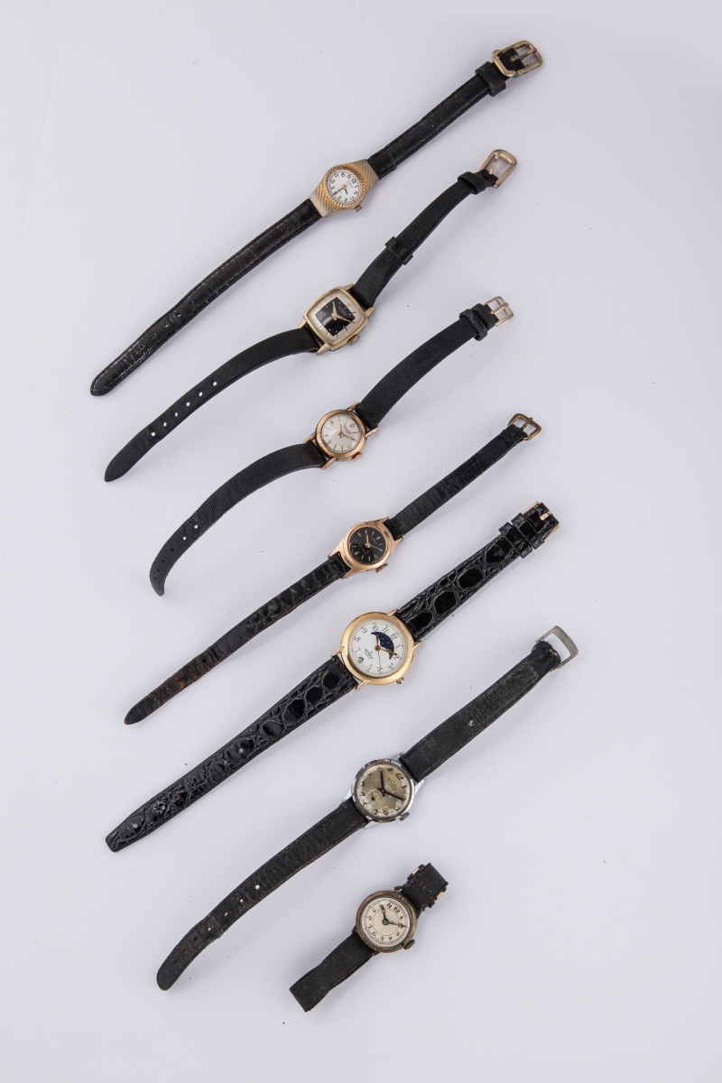 Lot de SEPT MONTRES bracelets de dame, en métal, tours de poignet en cuir.