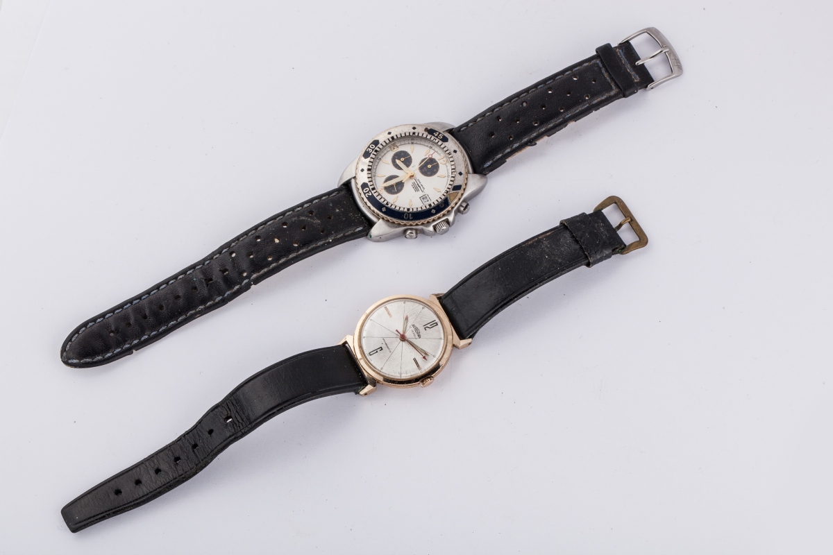 DEUX MONTRES bracelets d'homme, en métal, bracelets cuir.