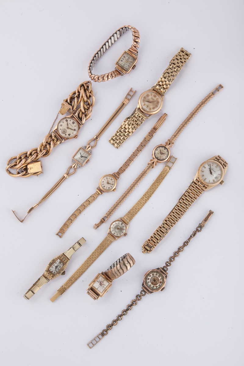 - CINQ MONTRES bracelets de dame en or, tours de poignet en métal