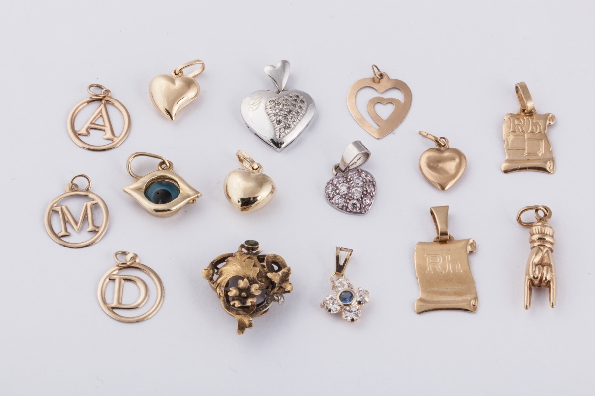 Lot de QUINZE PENDENTIFS en or et métal à motifs divers.