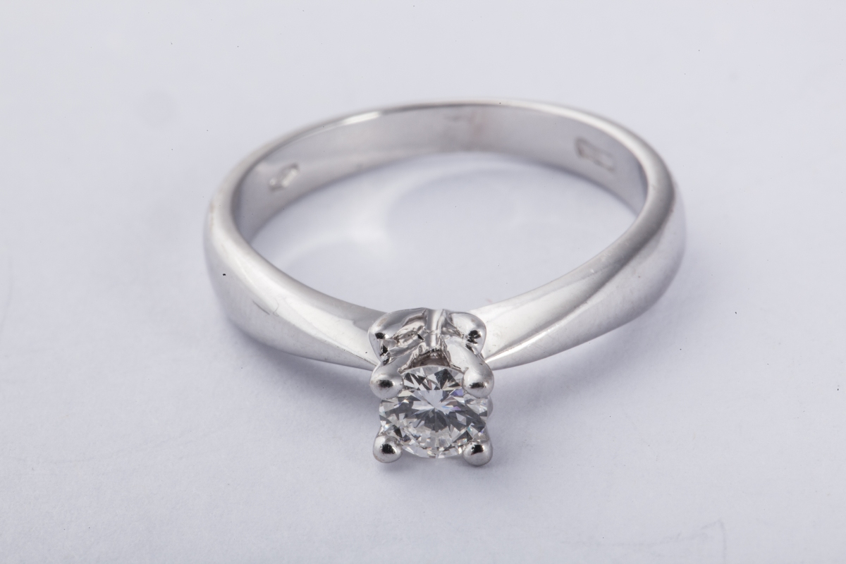 BAGUE en or gris, sertie d'un diamant de taille brillant.