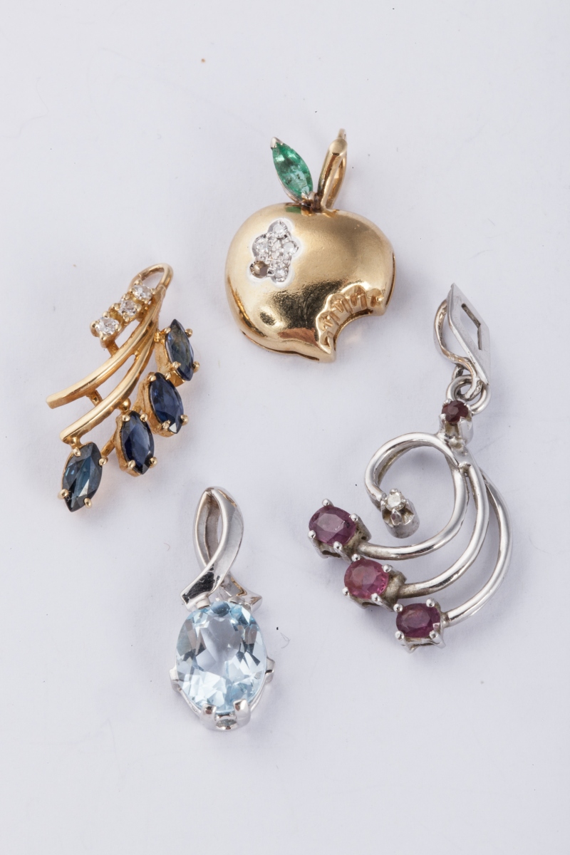 Lot comprenant QUATRE PENDENTIFS en or, sertis de pierres fines...