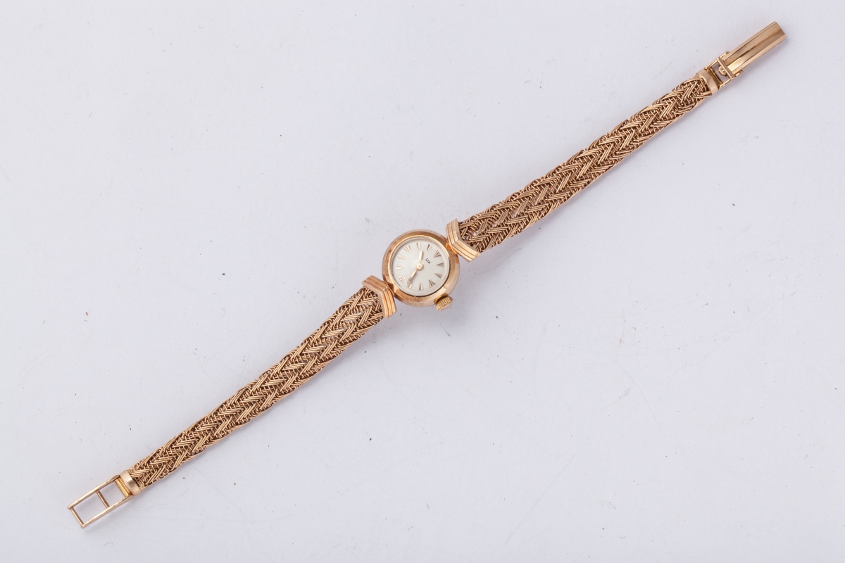MONTRE-BRACELET de dame, en or jaune, la montre de forme ronde, mouvement mécanique, bracelet souple tressé.