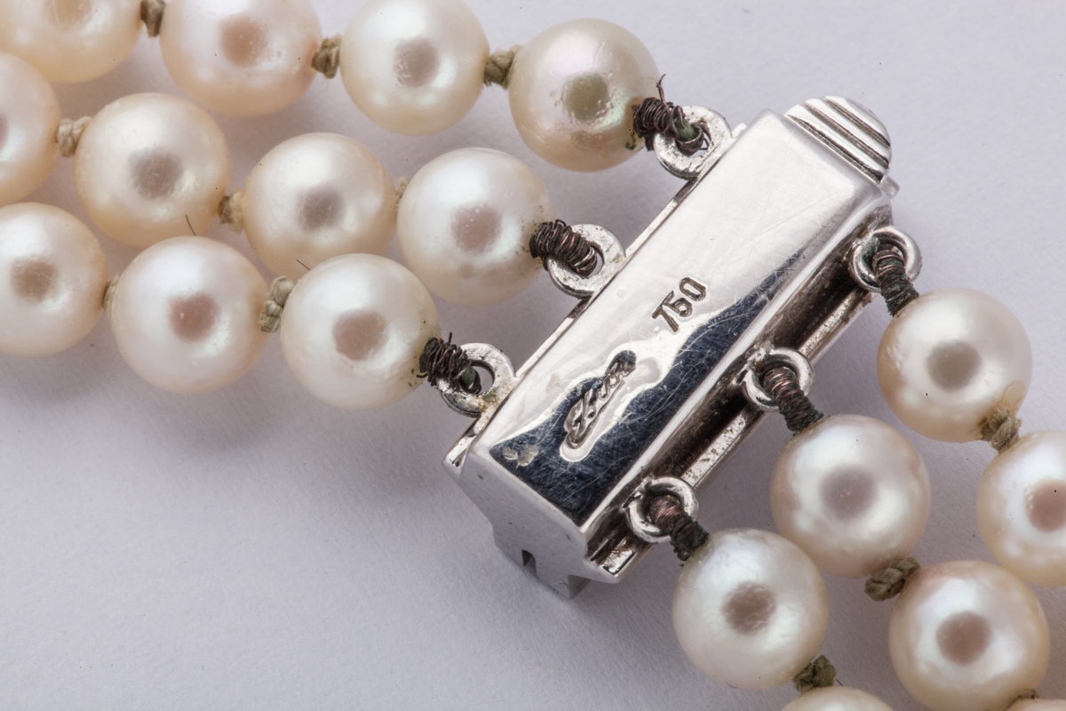 COLLIER trois rangs de soixante-quinze, soixante-dix neuf et quatre-vingt six...