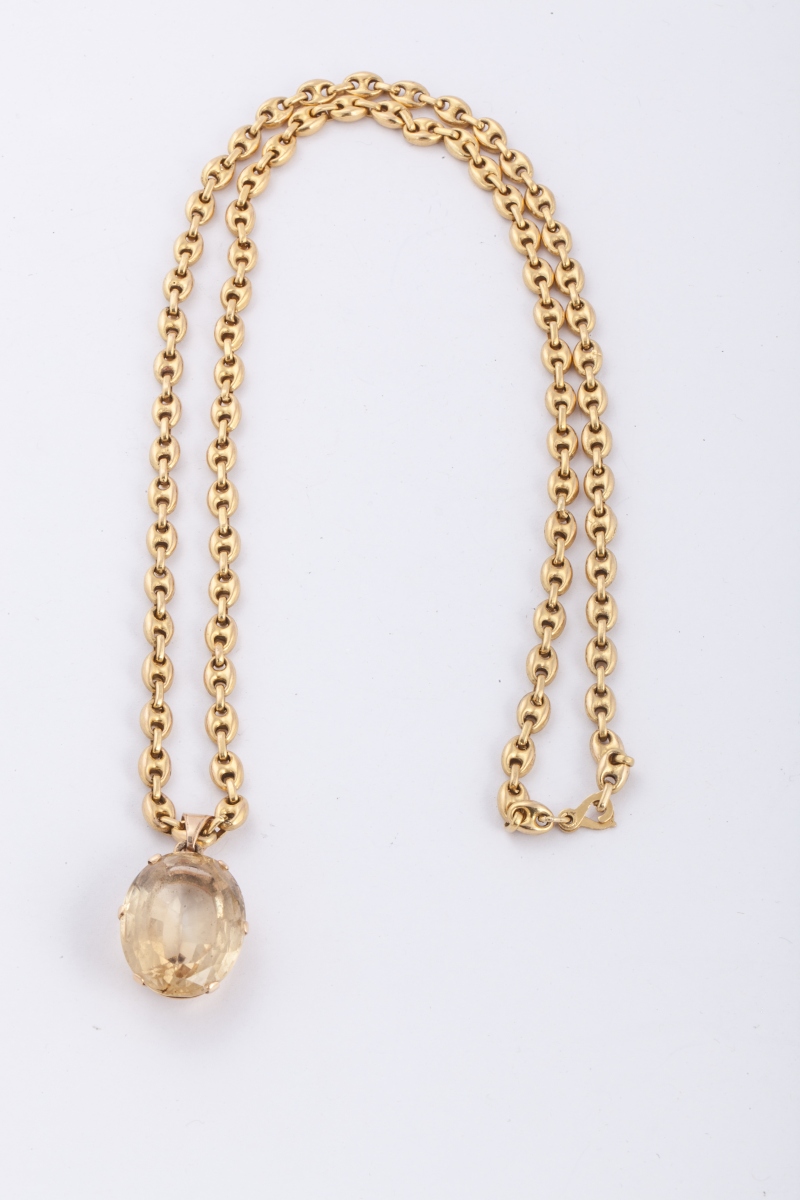 COLLIER en or, serti d'une pierre semi-précieuse (citrine ?). Poids brut : 39,9 g.