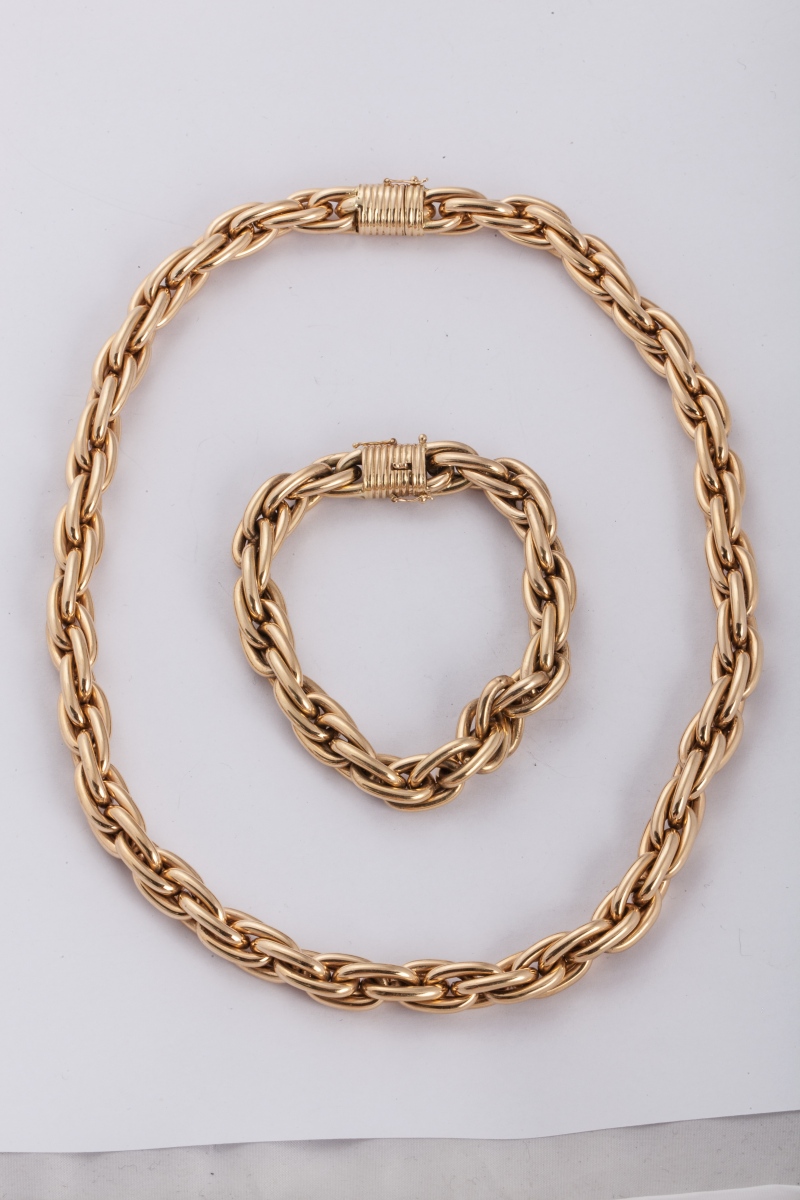 PARURE composée d'un COLLIER et d'un BRACELET à double maillons ovales entrelacés, en or jaune.