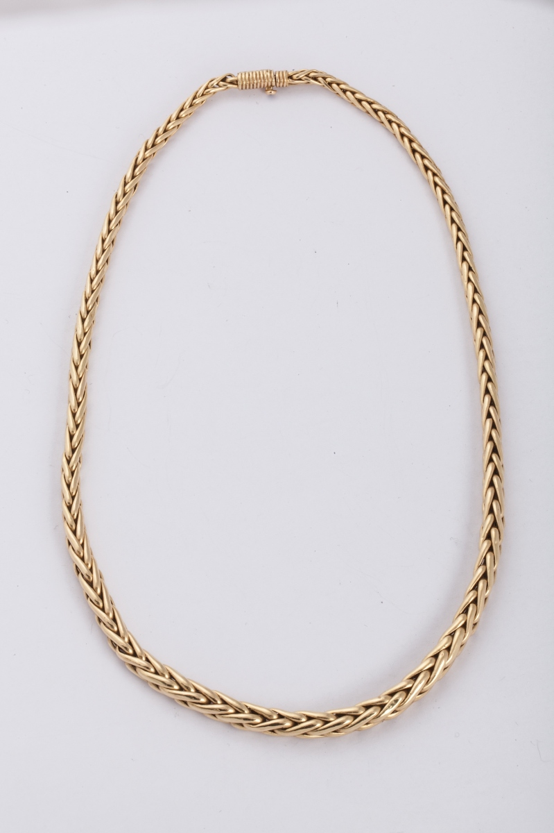 COLLIER en or jaune. Maille palmier.Signé "Caplain Paris".Long. 42 cm....