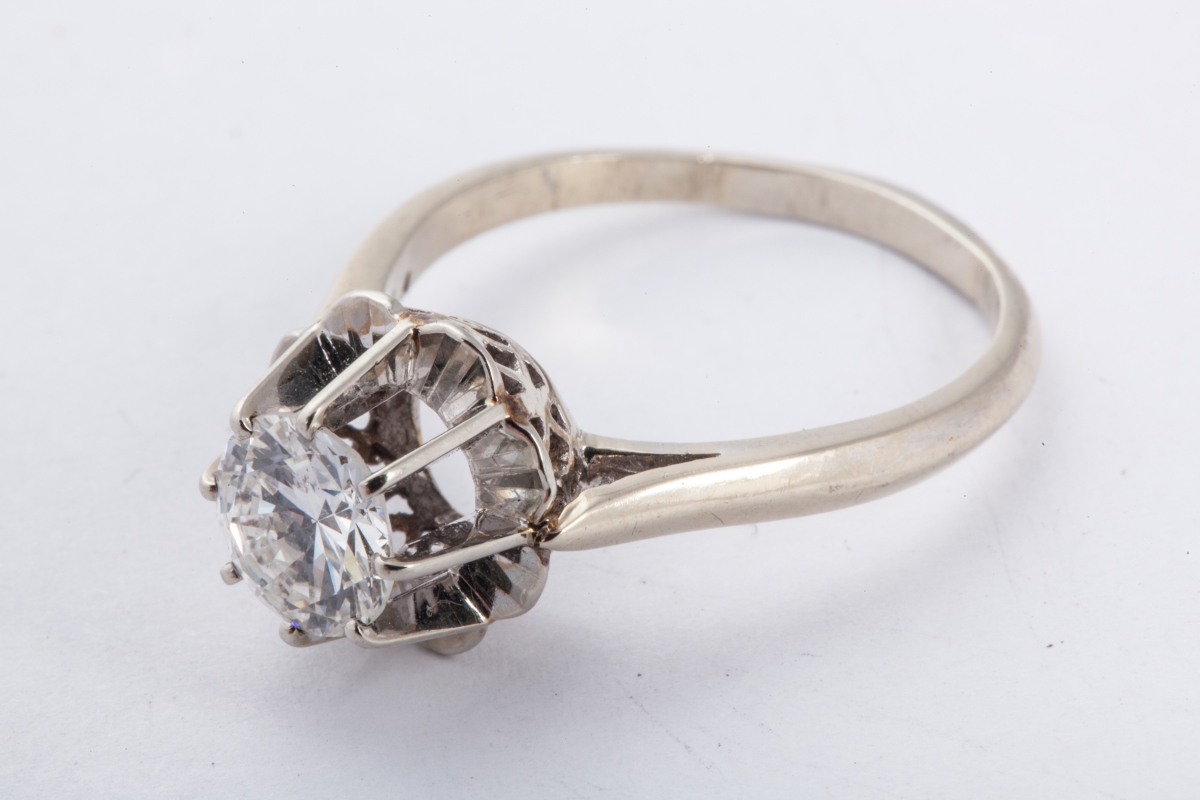 BAGUE SOLITAIRE en or gris sertie d'un diamant (GVS2) de 1,15 carat environ.