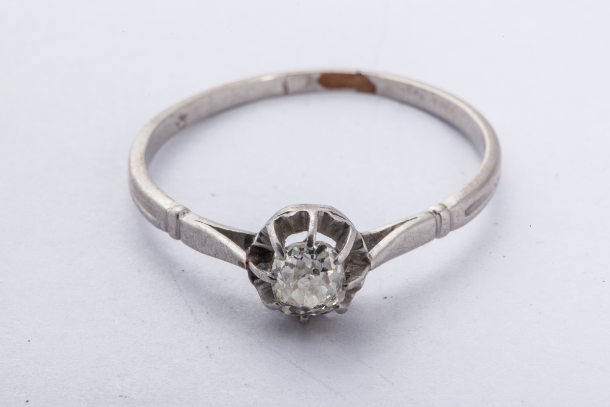 BAGUE en platine, centrée d'un diamant de taille ancienne (environ 0,25 carat).