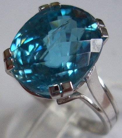 BAGUE en or blanc, ornée d'un zircon naturel bleu taille ovale facetée de 13,25 carats environ.