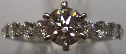 SOLITAIRE en or blanc, ornée d'un diamant taille moderne d'environ 0,60 carat agrémenté de 2 X 4 diamants taille moderne d'environ 0,60 carat.