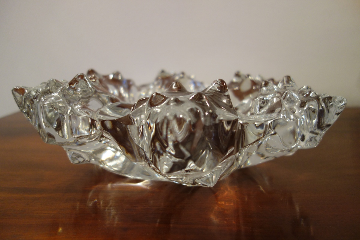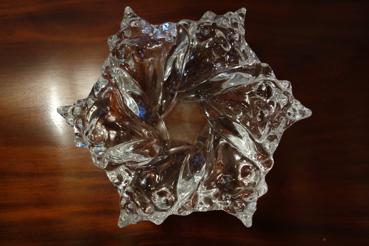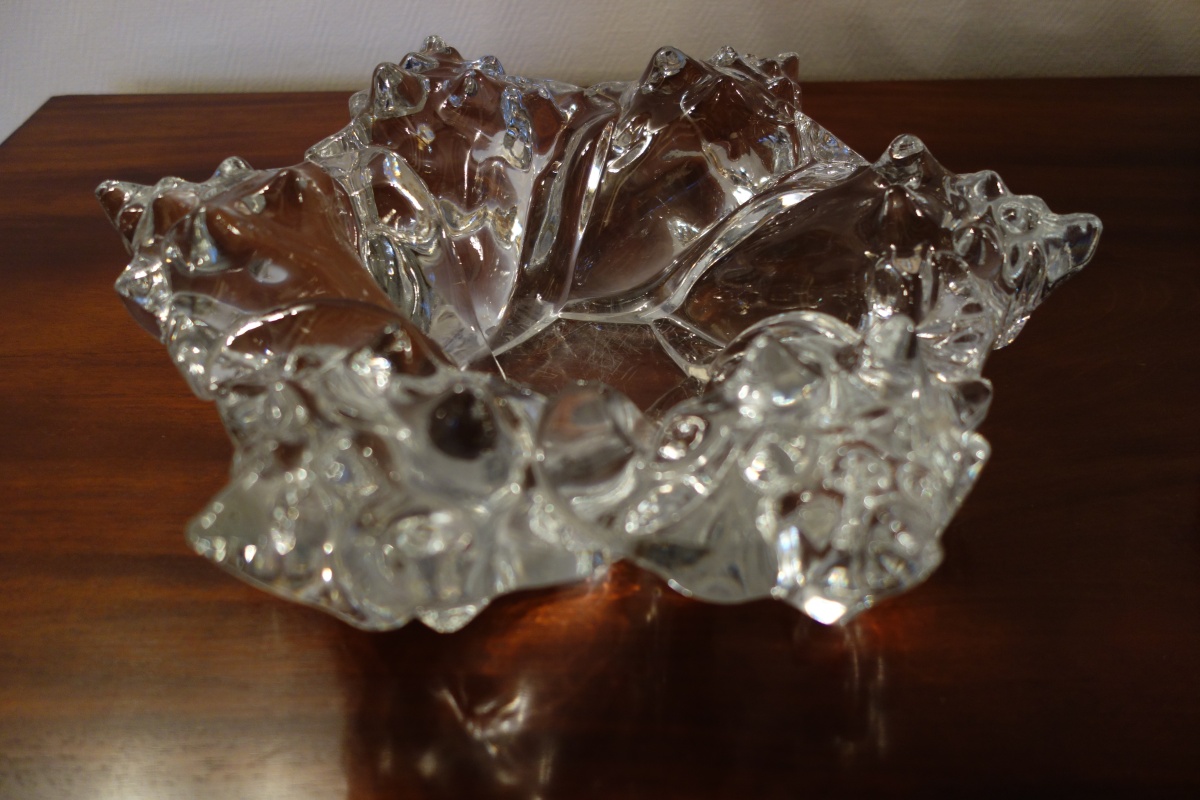 LALIQUE. COUPE HEXAGONALE en cristal formé de six conques en spirale circulaire. Signé Lalique France.