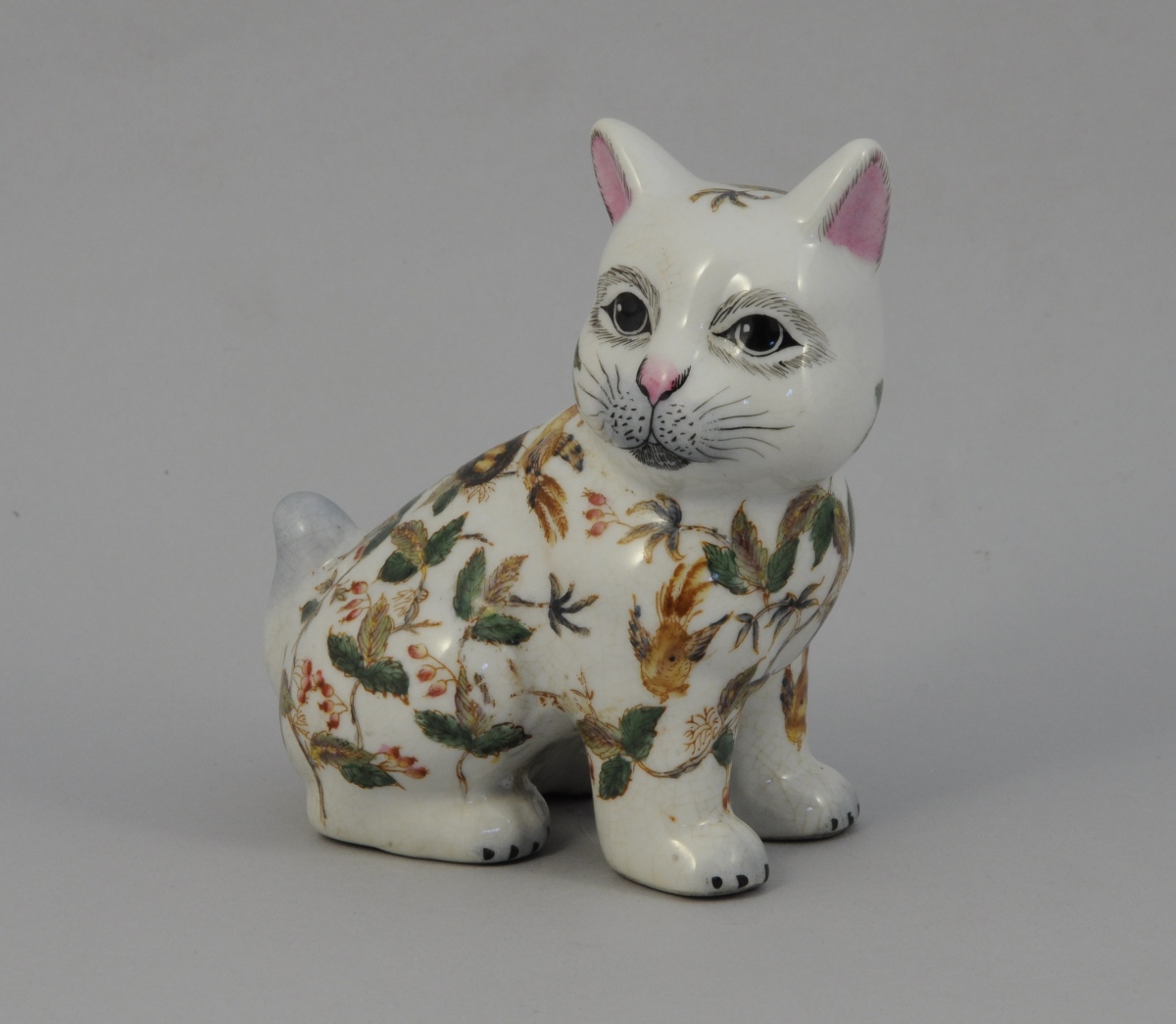 CHATON en porcelaine à motif peint d'oiseaux branchés près d'un nid. Marque de manufactures.