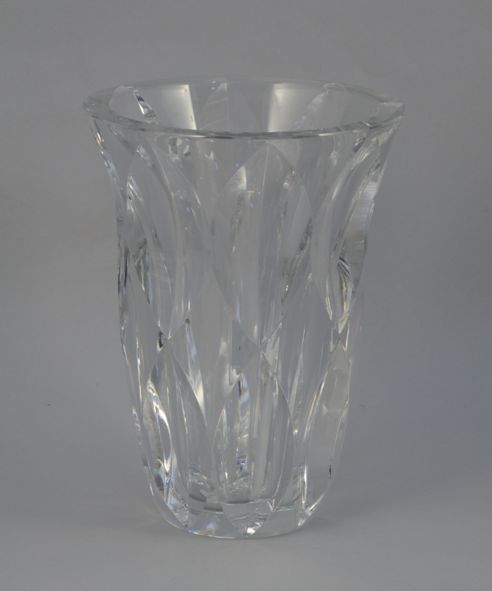 SAINT-LOUIS. VASE conique en cristal facetté de forme lancéolée. Signé sous la base.
