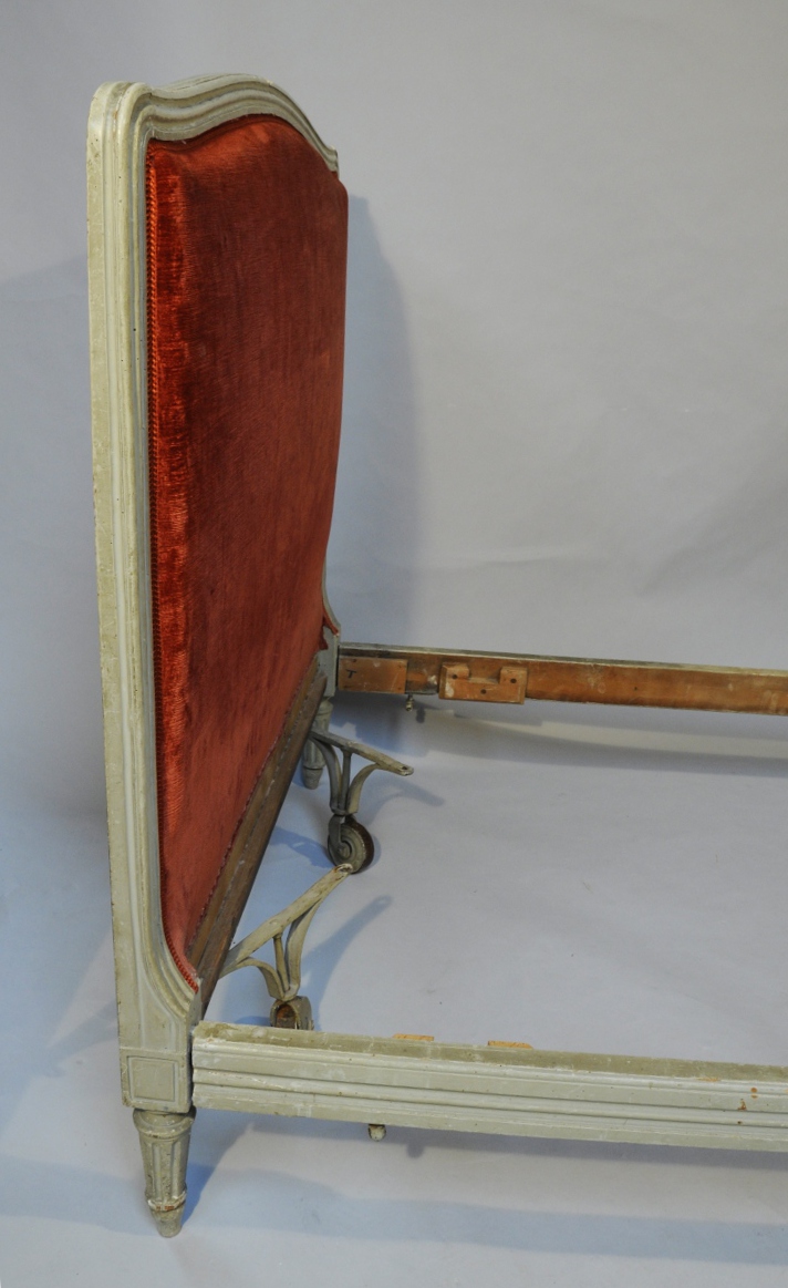 LIT D'ALCÔVE en bois relaqué gris. Dosserets égaux légèrement arrondis,...