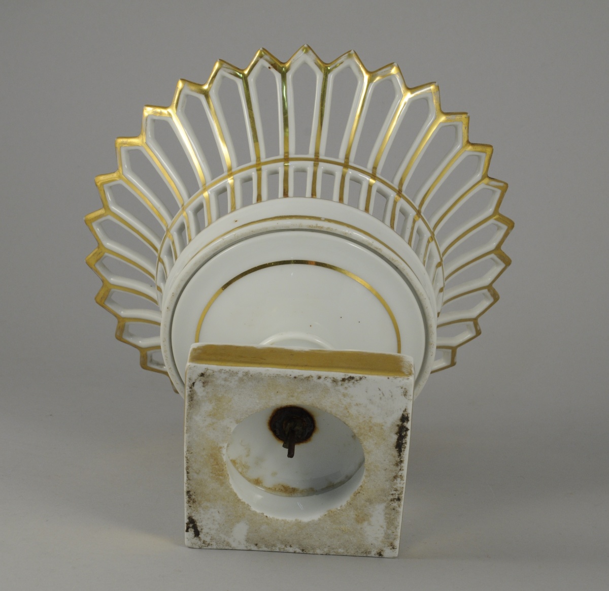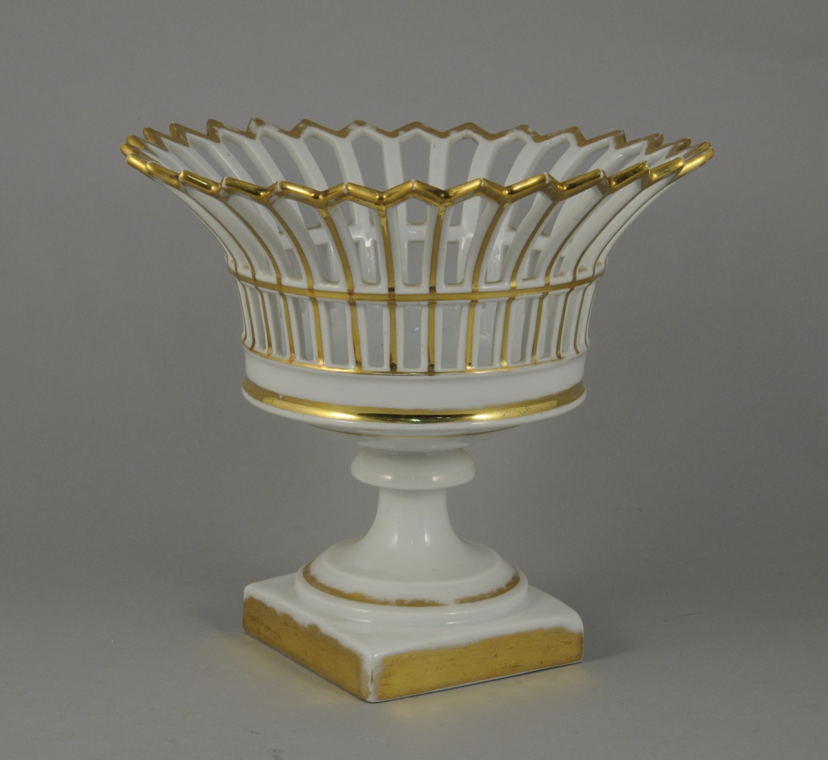 COUPE circulaire sur piédouche, en forme de corbeille - porcelaine blanche à filets or.