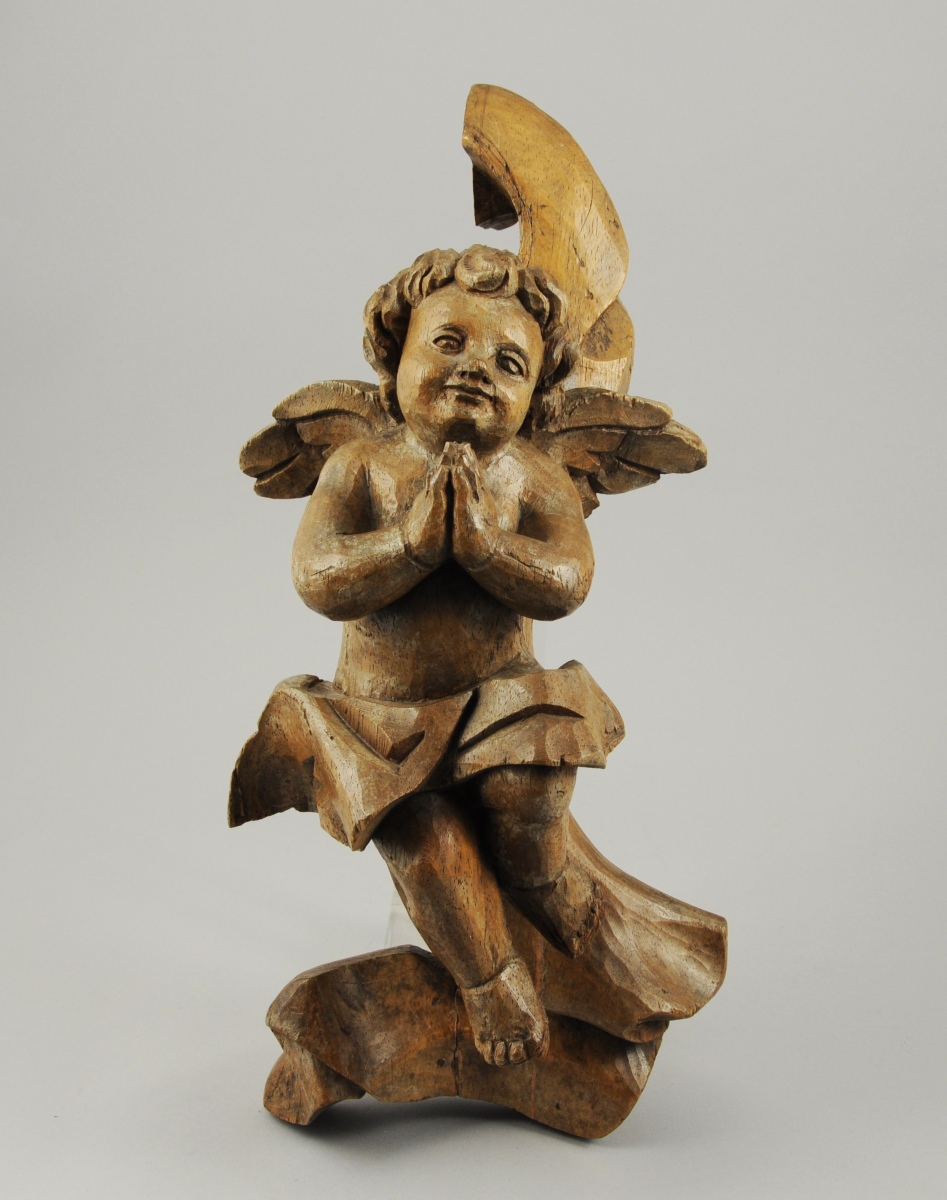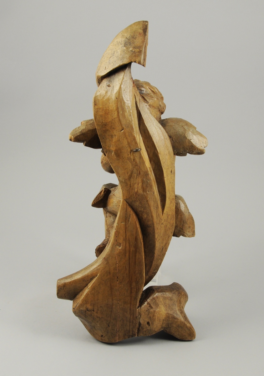 ANGE en bois sculpté reposant sur une branche stylisée. XXème.Haut....