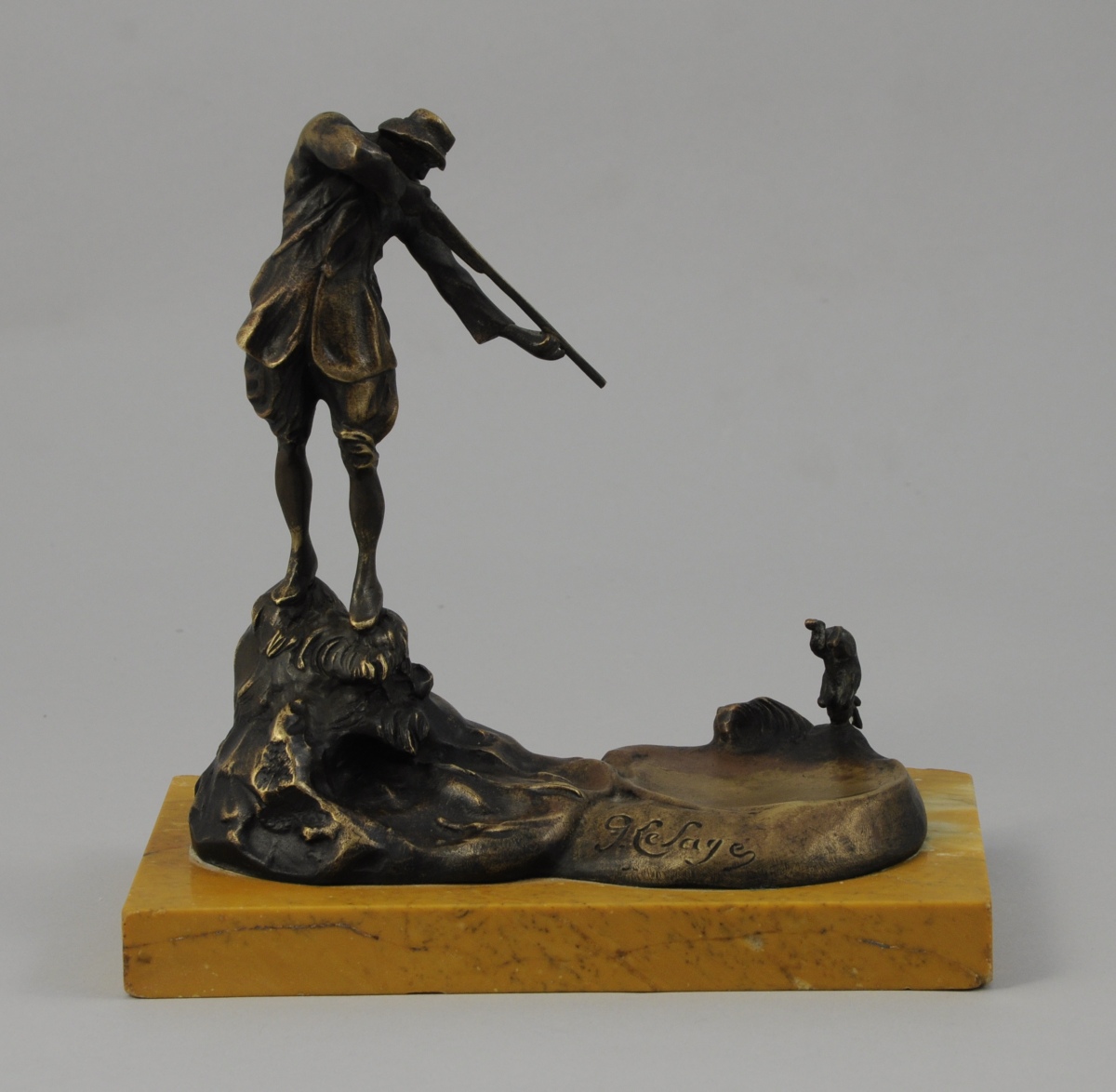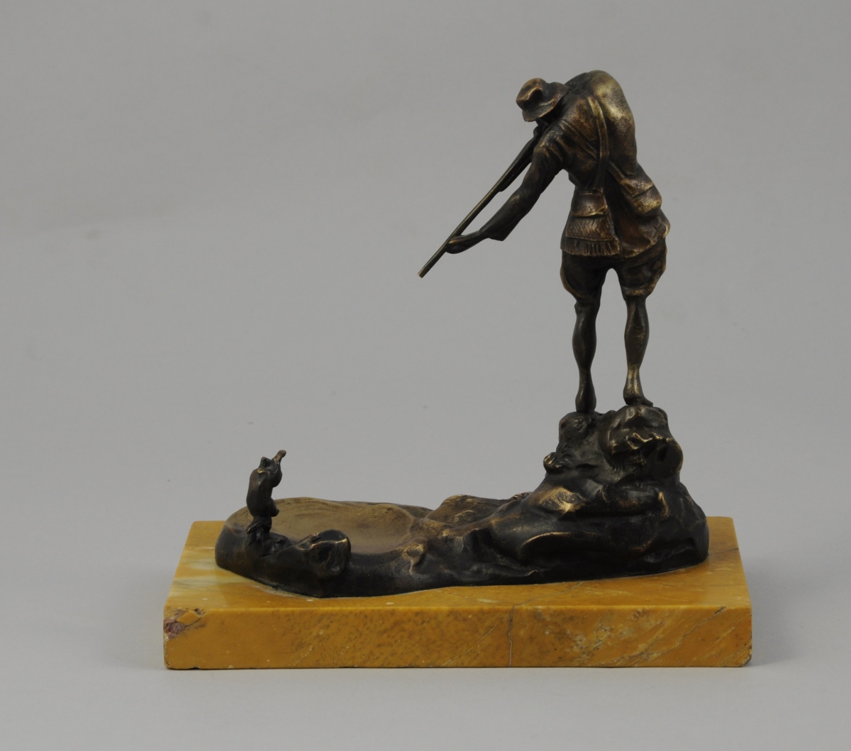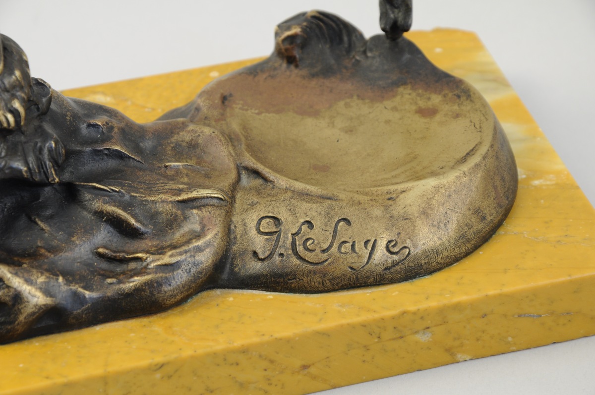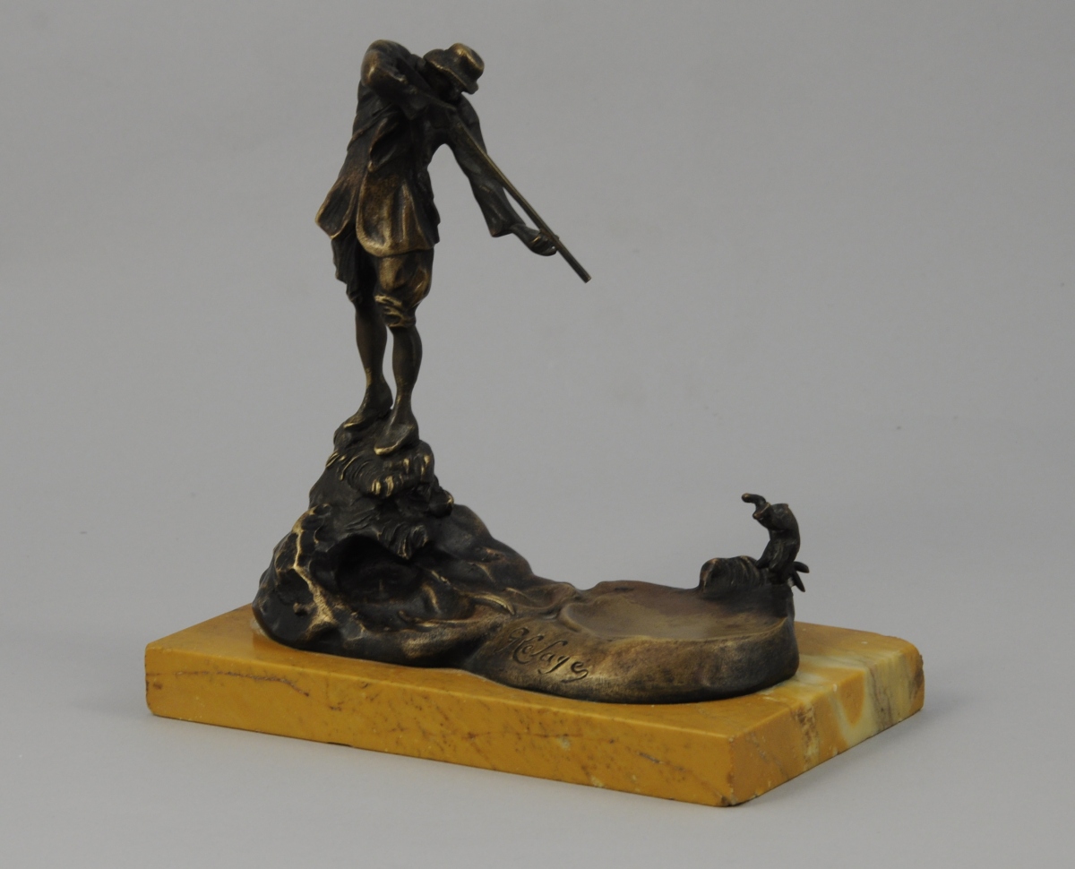 LE CHASSEUR DE LIEVRE. Bronze pâtiné signé "G. Le Sage", sur un socle de marbre jauni à la façon de Sienne.