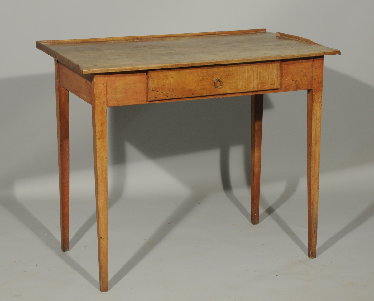 TABLE en merisier à pieds gaines. Tiroir en ceinture. Haut. 70 cm. Larg. 86 cm. Prof. 51 cm.