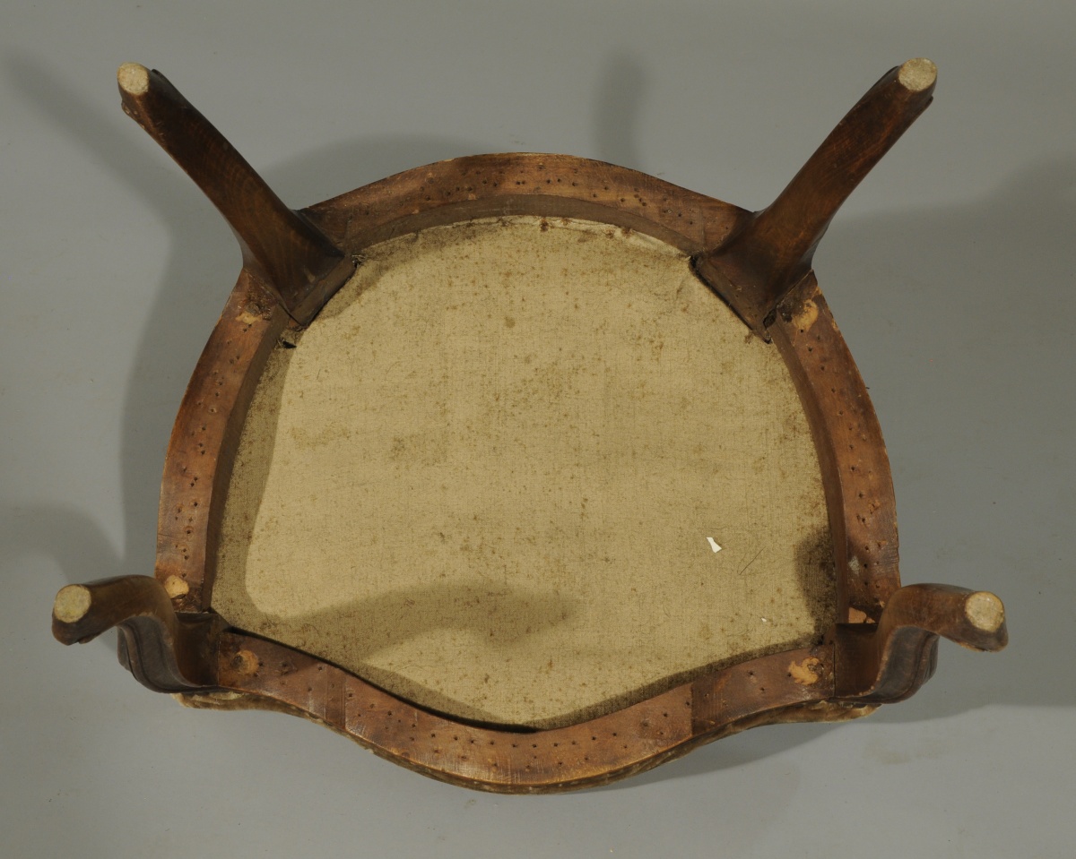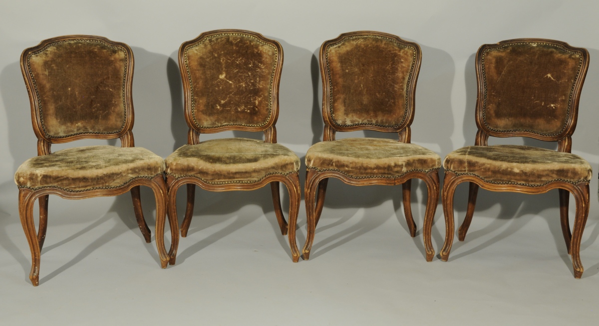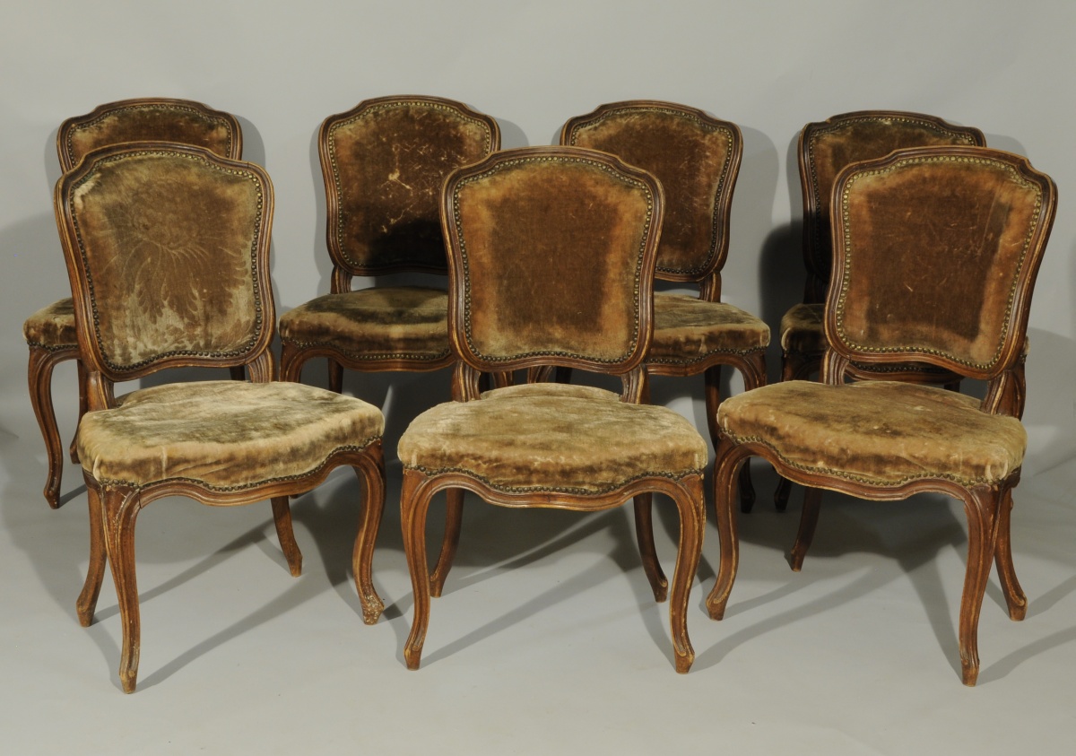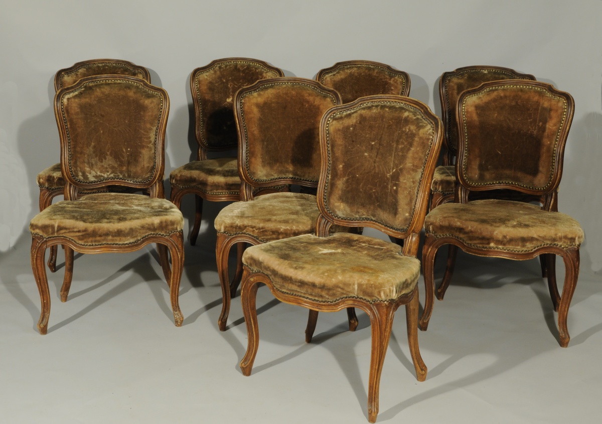 Suite de 8 CHAISES en bois mouluré. Dossiers de formes violonées. Pieds galbés.