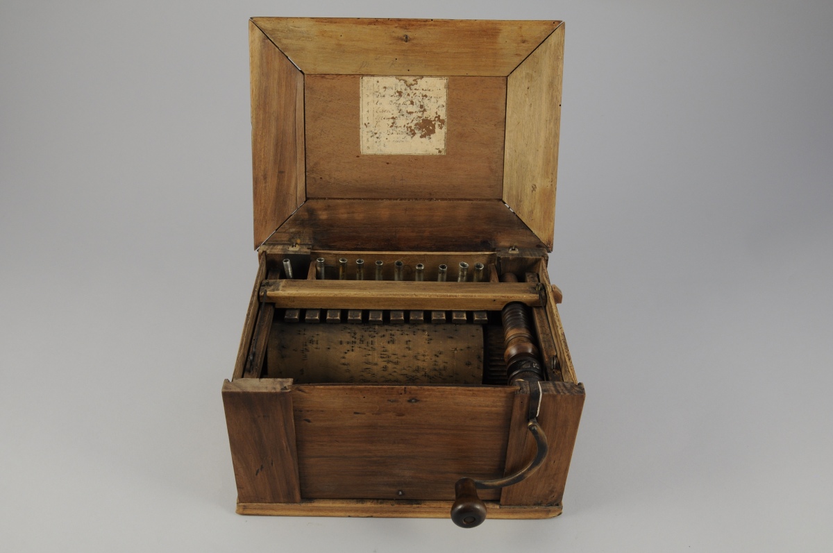 SERINETTE à huit airs et dix touches. Boîte en noyer.