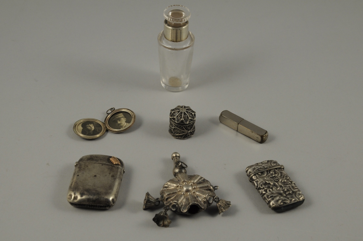 - ÉTUI de BRIQUET en métal argenté repoussé à décor de rinceaux feuillagés. XIXème. Haut. 4,5 cm.