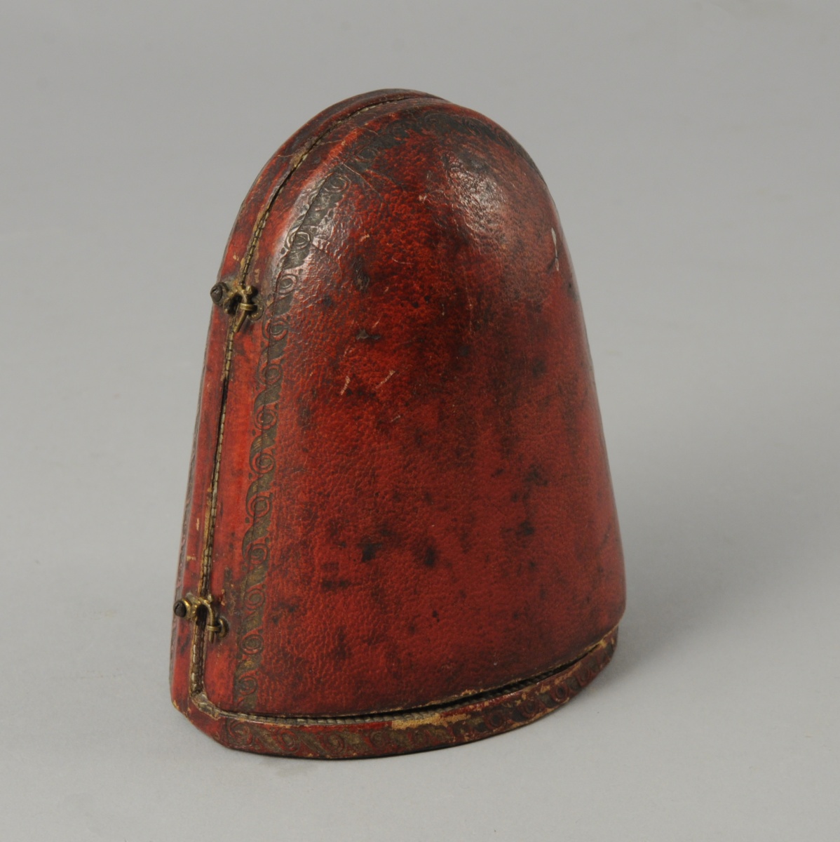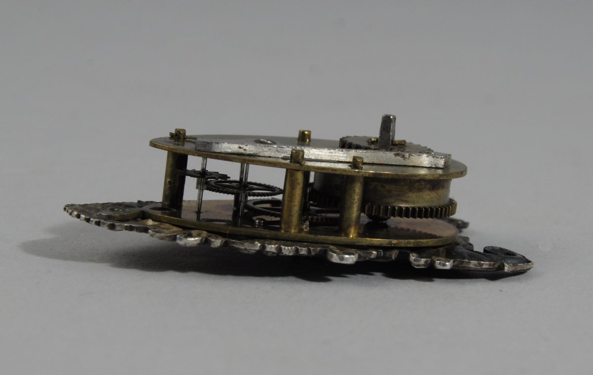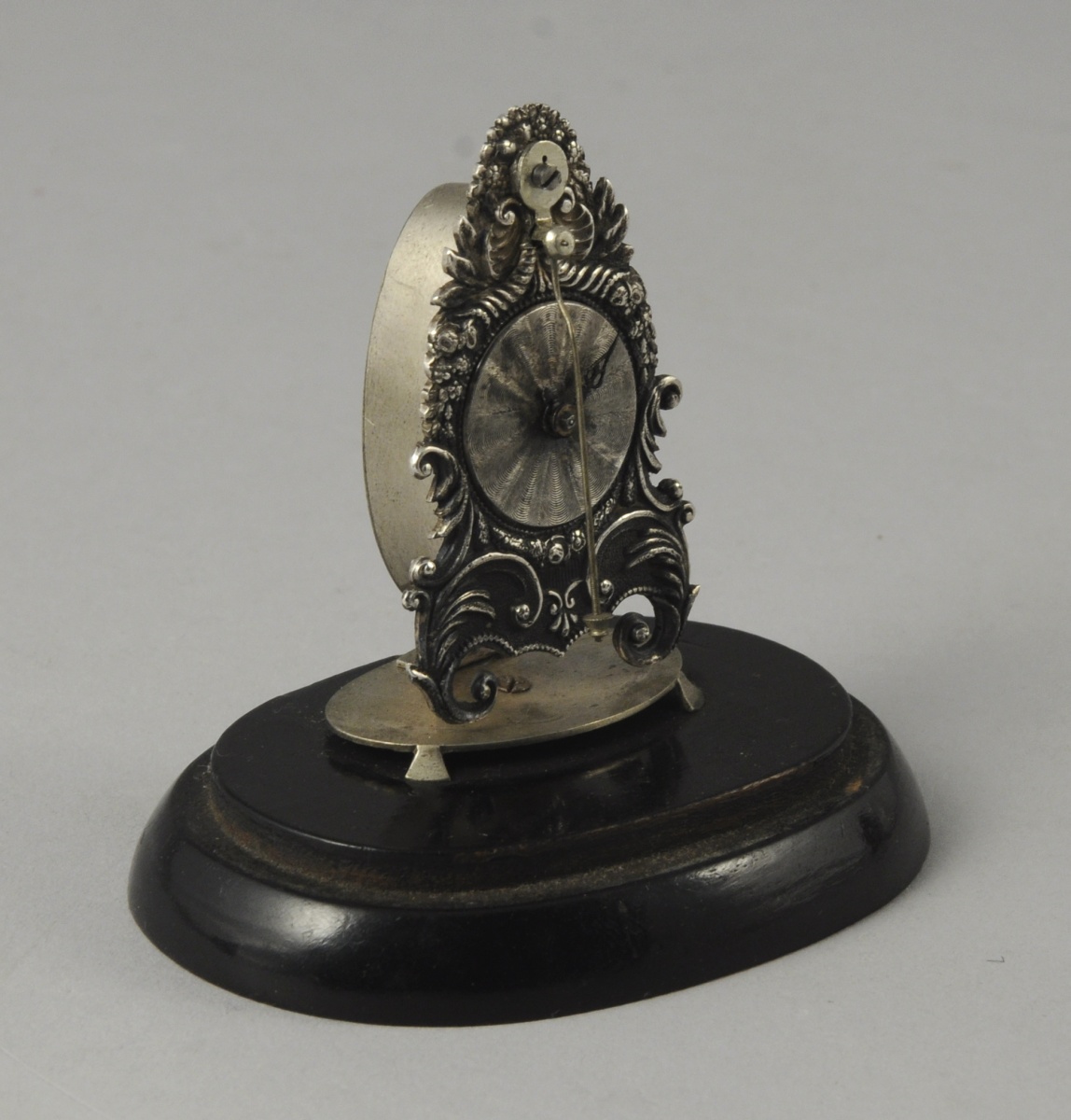 PENDULETTE miniature, dite de poupée. Style étranger composite, signé A List sur la platine arrière. Globe verre accidenté. Écrin en maroquin rouge ancien gainé de peau chamois.