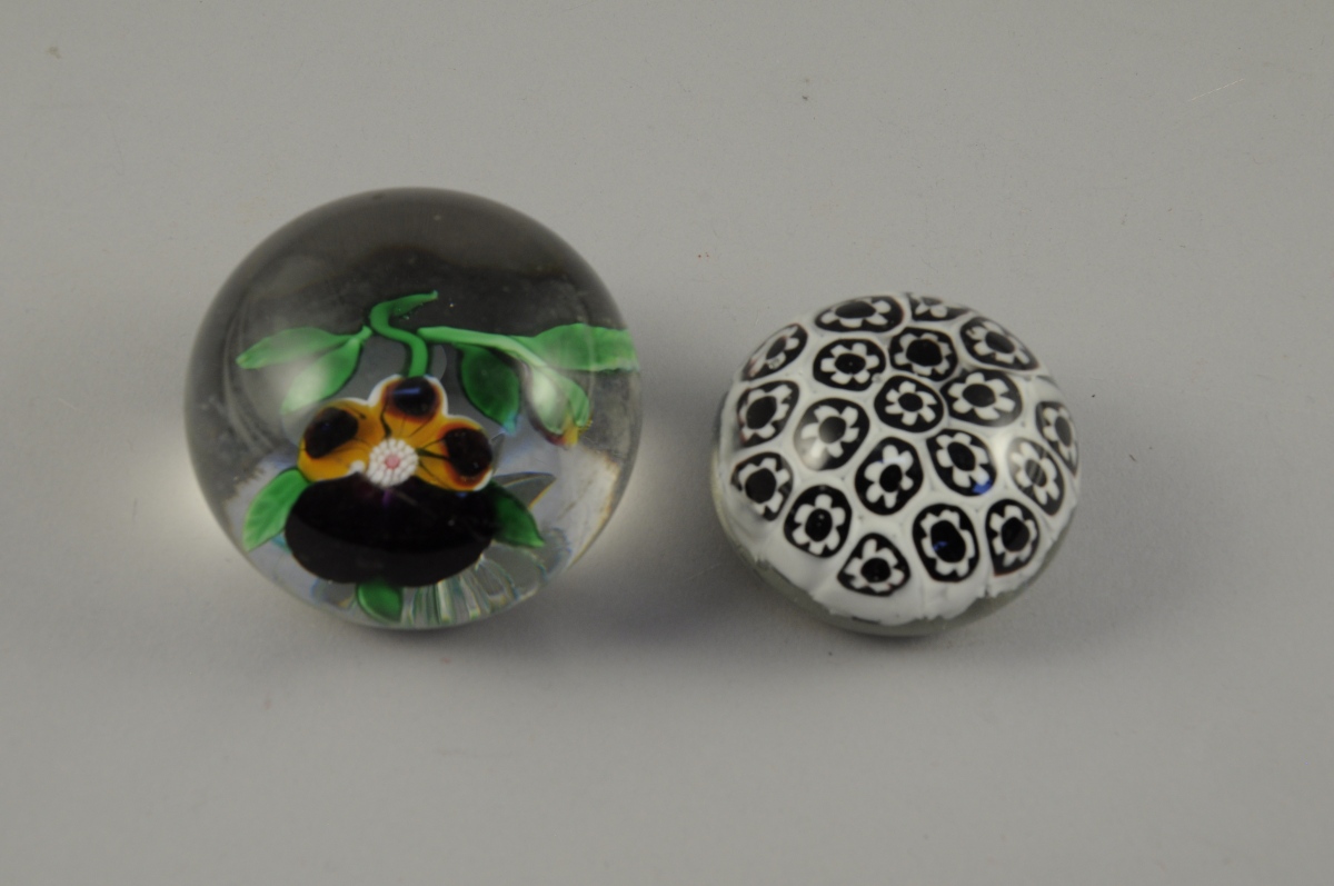 BACCARAT. Boule en cristal fleurin signée et une boule signée MURANO. Diam. 6 et 5 cm.