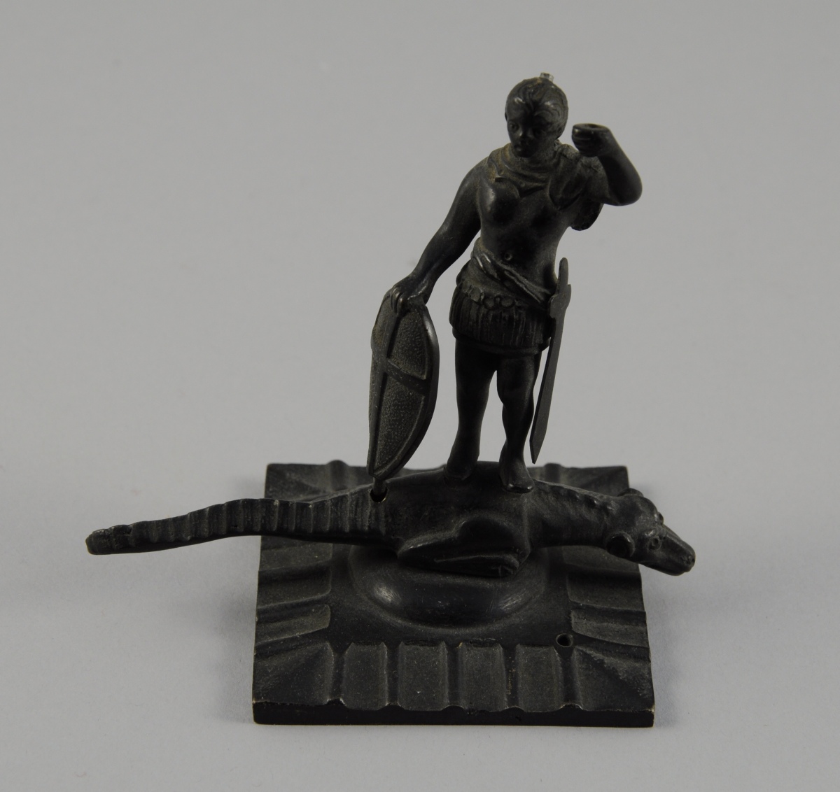 SAINT-MICHEL terrassant le dragon. Figurine en bronze pâtiné.