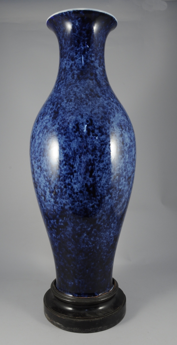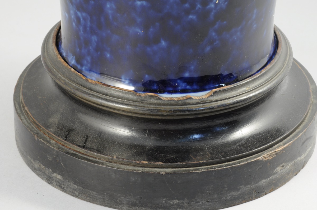 SÈVRES. VASE balustre en porcelaine émaillée bleu poudré. Marque " S[...] " sur le col. Le fond coupé. Socle circulaire en bois noirci mouluré.