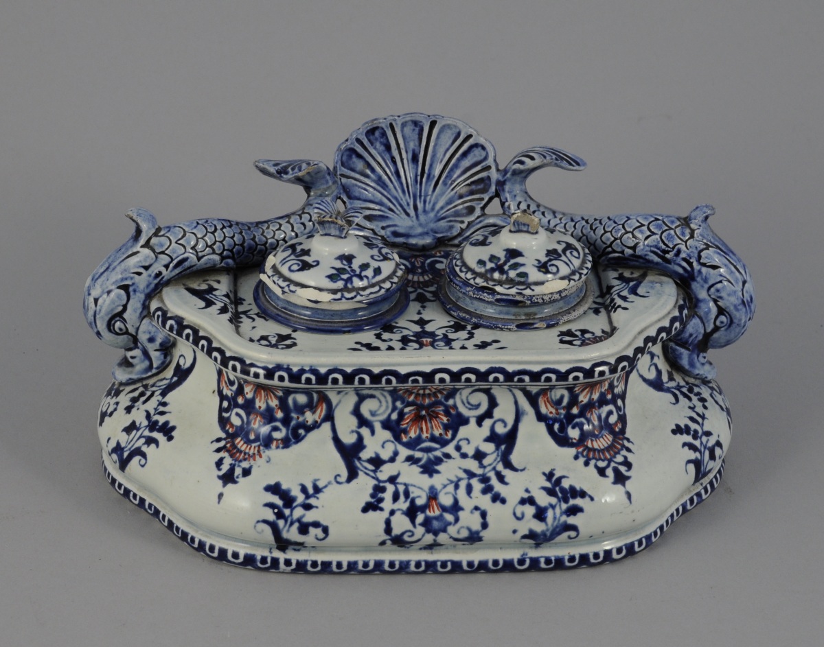 Un encrier de forme identique est illustré dans l'ouvrage de Marie-Cécile GILLARD, Faïence de Gien 1821-1900, Paris, Massin, 2008, p. 164.