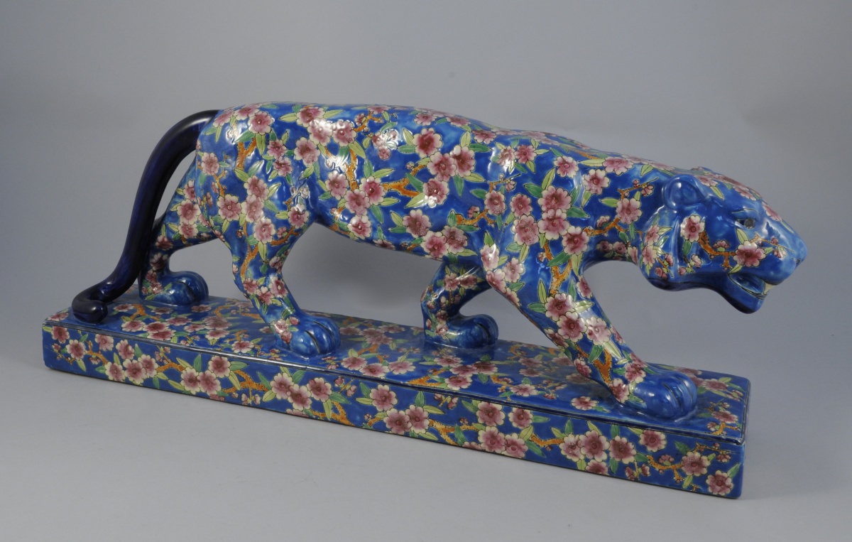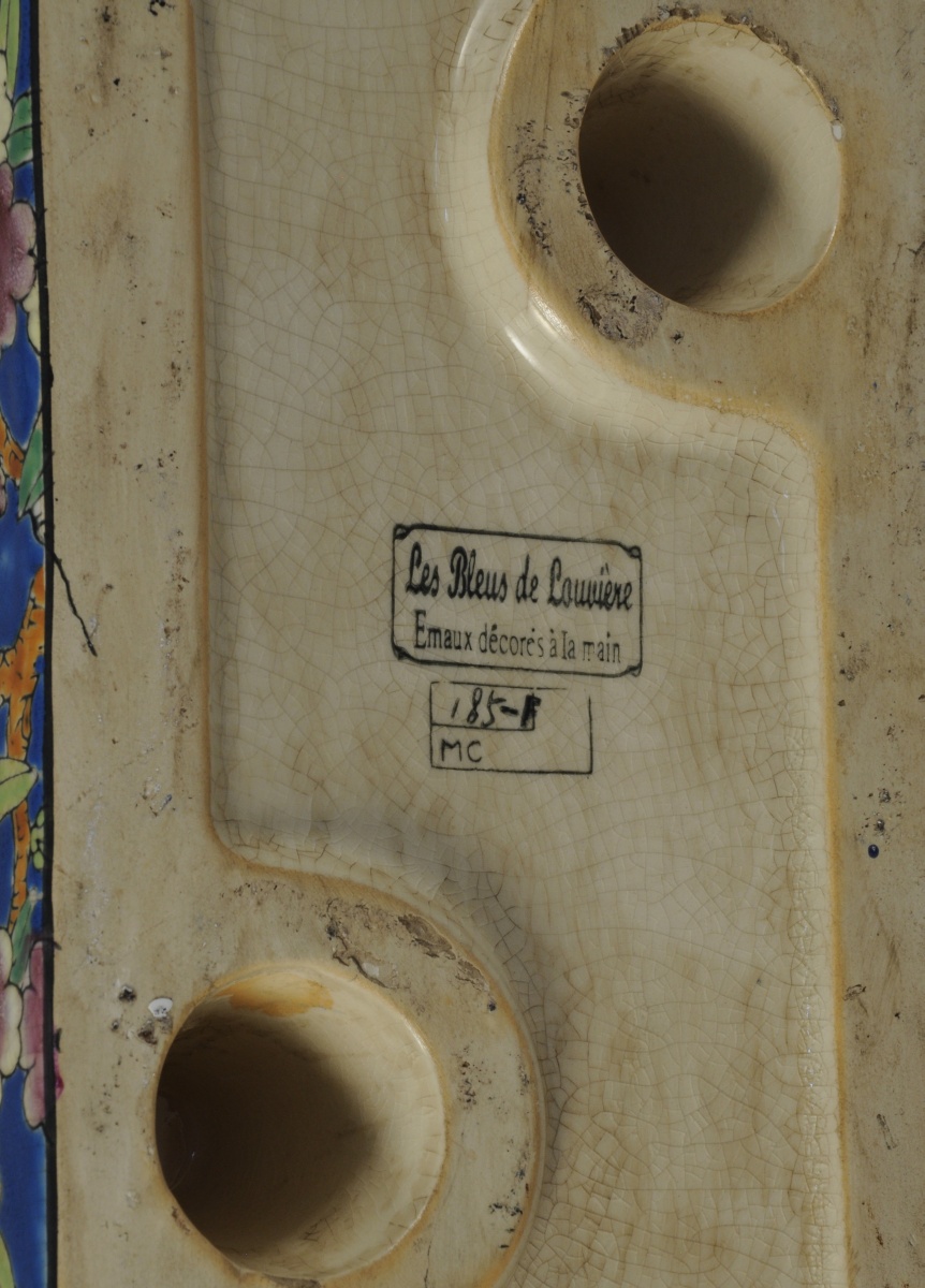 LOUVIERE émaux. Panthère. Cachets : les bleus de Louvière. Emaux décorés à la main. 185-F. MC.