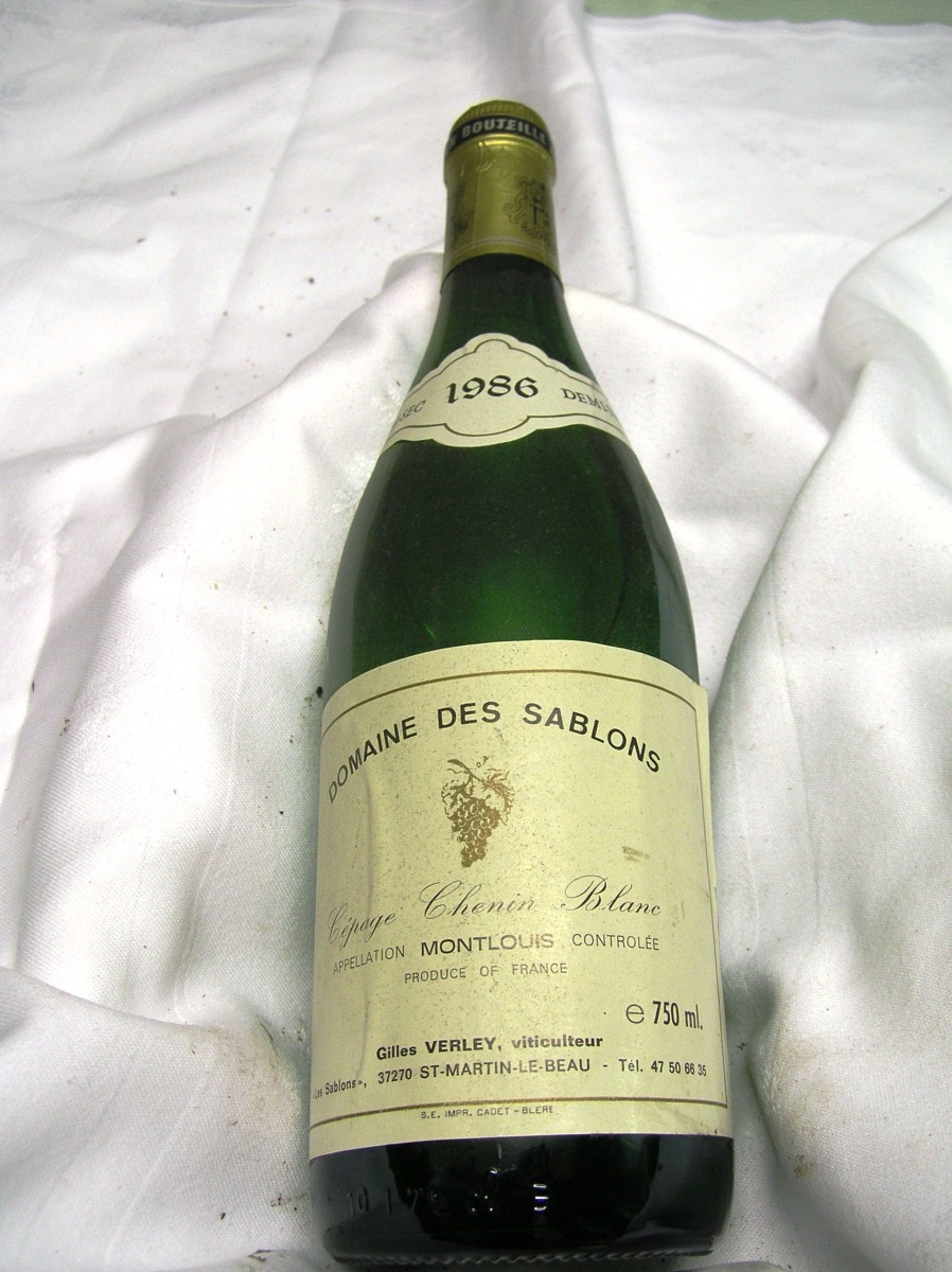 MONTLOUIS - ½ sec - Domaine des Sablons - Verley - 1986 - lot de 12 bouteilles 75cl - étiquetage en bon état