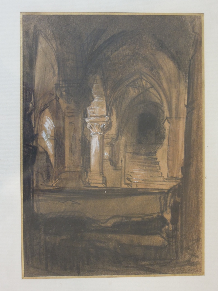 Fusain et rehaut de blanc, signé en bas à droite.