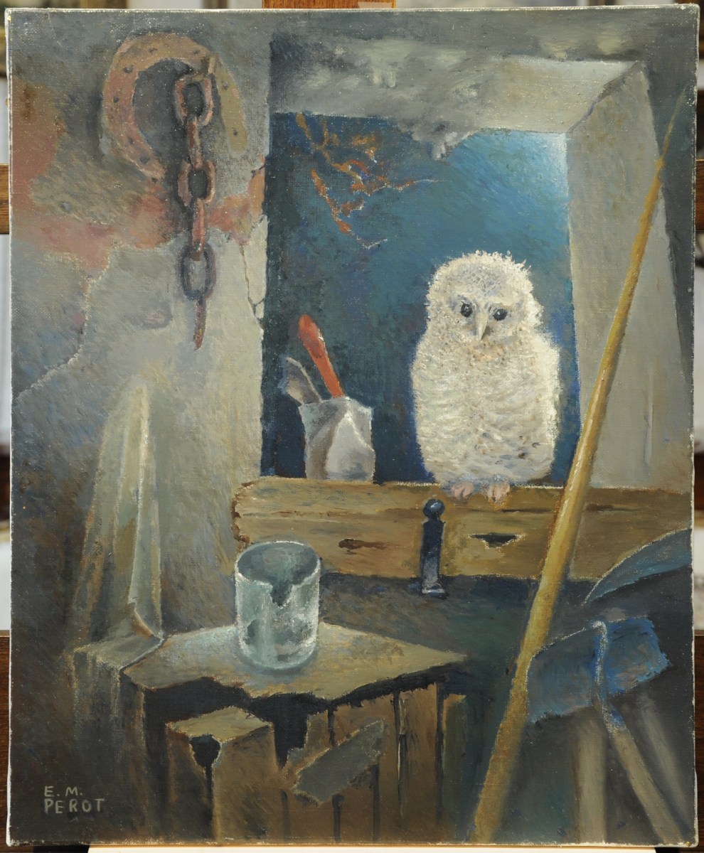 Edmond M. PEROT (1907) Chouette.Toile signée en bas à gauche.61...