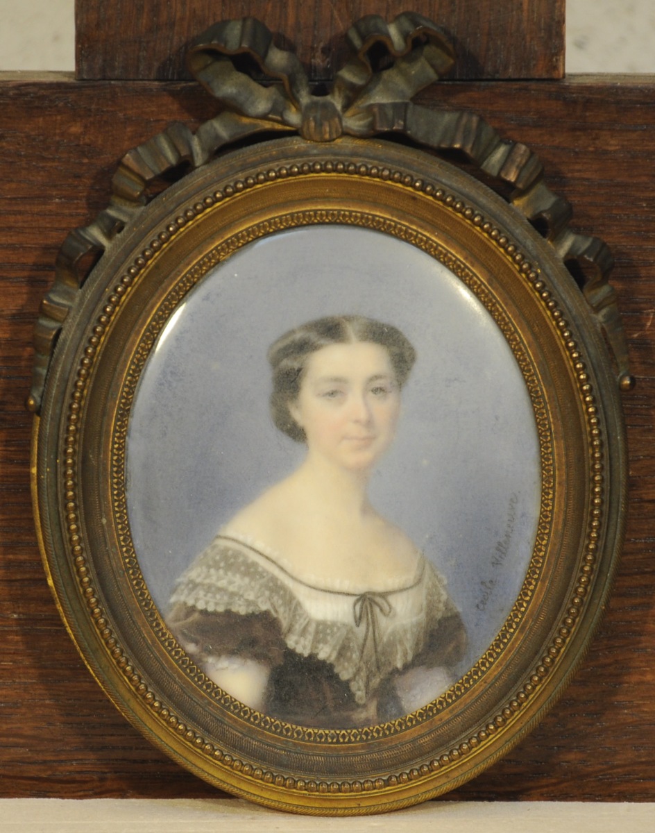 Élève de Meuret, Cécile de Villeneuve livra entre autre les portraits de Rossini ou de Delacroix. Sur cette peintre en miniatures voir l'ouvrage de LEMOINE-BOUCHARD N., Les Peintres en miniatures 1650-1850, Paris, 2008, p. 525-526.